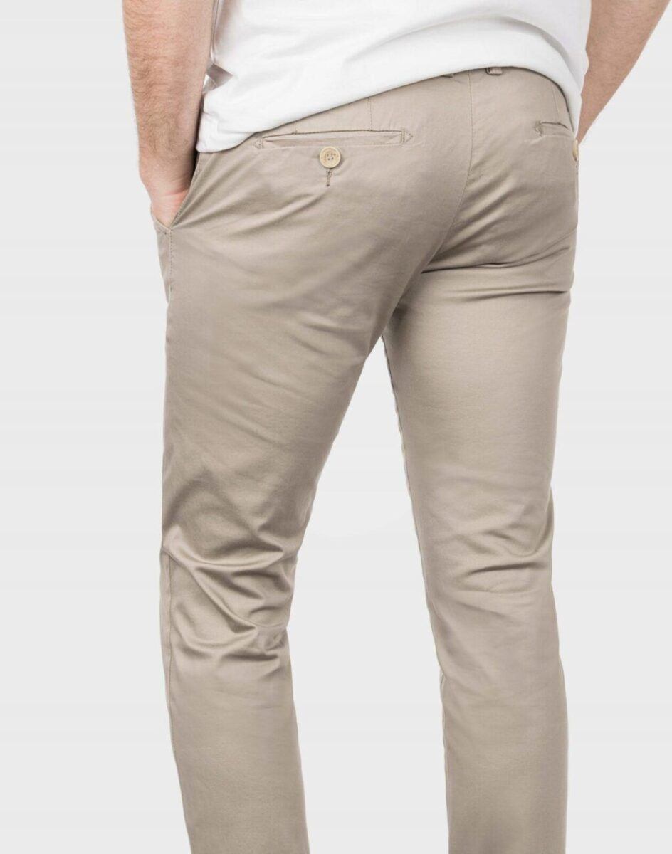 Spodnie męskie typu Chino zwane również Chinosami to klasyka wśród klasyki. Uszyte z miękkiej, przewiewnej tkaniny bawełnianej o skośnym zapewniającym wytrzymałość splocie z dodatkiem spandexu. Charakterystyczne elementy Chinosów to dwie skośne kieszenie z przodu i dwie wpuszczane kieszenie z tyłu zapinane na guziki. W pasie szlufki umożliwiające stylizacje z paskiem. Dzięki dodatkowi 3% lycry (spandex) spodnie są bardziej elastyczne i wyjątkowo wygodne w użytkowaniu. Pozwalają na pełną swobodę ruchów, co daje komfort przy siadaniu i zapewnia ogromny komfort noszenia.