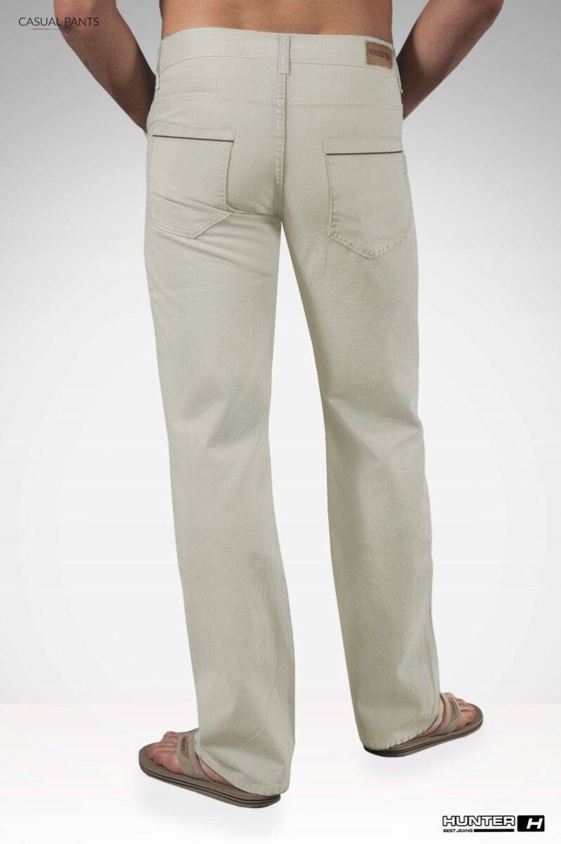 Spodnie męskie bawełniane polskiej firmy HUNTER ze standardowym stanem i klasyczną lekko zwężaną nogawką to jeden z najczęściej wybieranych modeli spodni. Wykonane z wysokiej jakości trwałej i mocnej tkaniny bawełnianej o gęstym splocie i jednolitym wybarwieniu. Zapinane są na kryty zamek błyskawiczny i metalowy guzik sygnowany logiem firmy. Z przodu mają dwie kieszonki zaokrąglone oraz mniejszą kieszonkę tzw. bilonówkę, a na tyle klasyczne kieszenie naszywane jak w typowych spodniach jeansowych. W pasie szlufki umożliwiające stylizacje z paskiem. Najbardziej podatne na uszkodzenia miejsca wzmocnione są dodatkowymi przeszyciami oraz nitami.