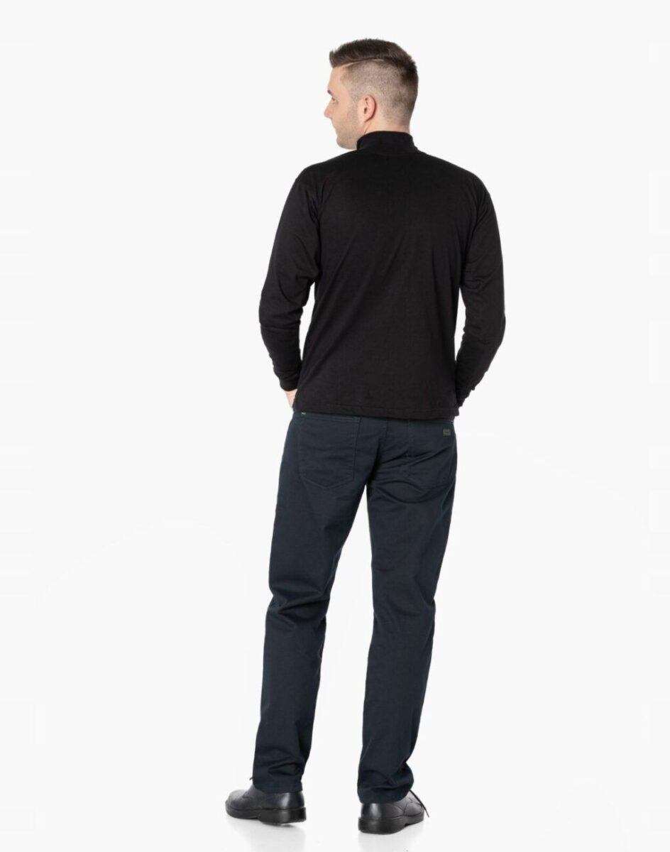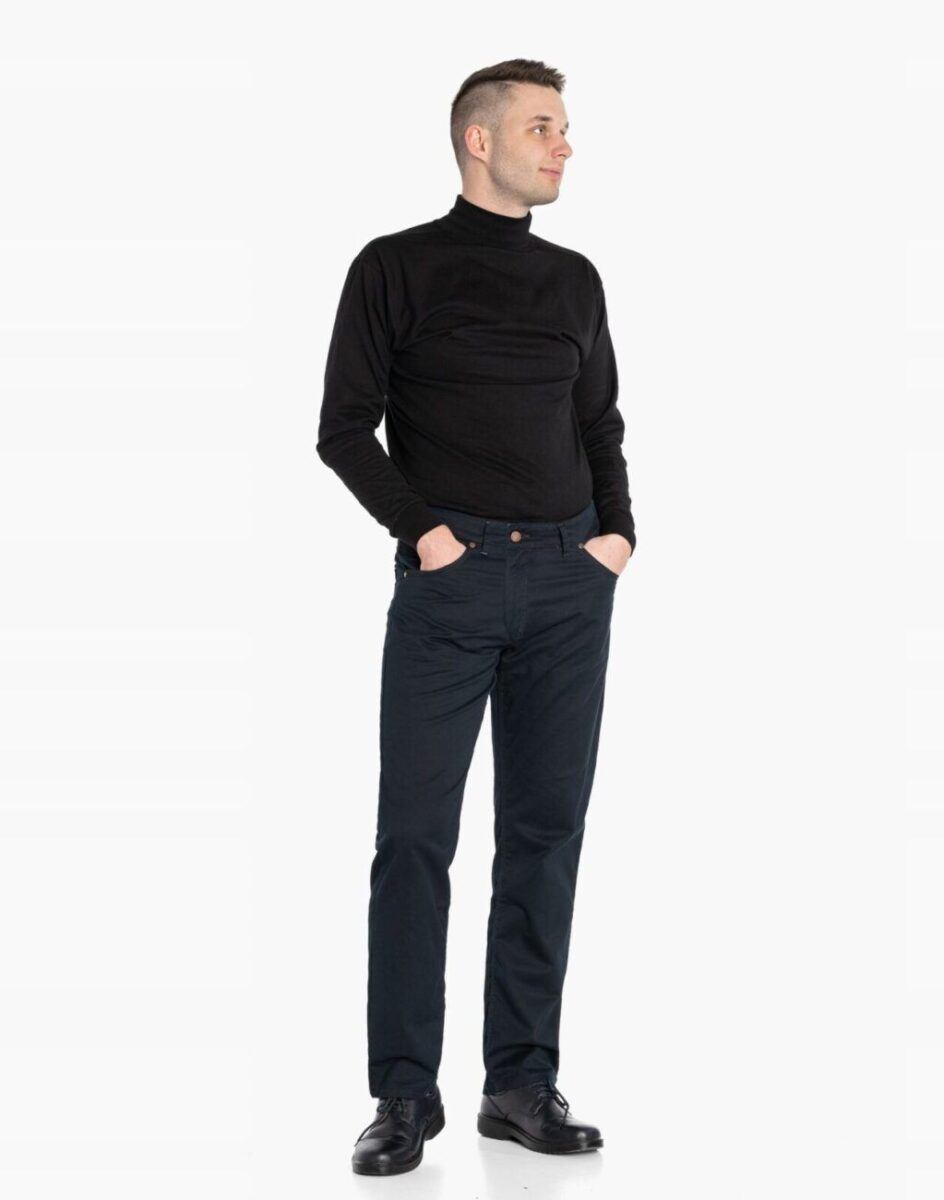 Fason typu REGULAR FIT czyli model z lekko zwężanymi nogawkami i standardowym stanem, stylowy i równocześnie wygodny, wyraźnie wysmuklający męską sylwetkę. Jest to wszechstronny krój który ma świetnie wyprofilowane nogawki i wygląda dobrze na każdym, a dzięki dodatkowi elastanu jest również wyjątkowo wygodny. Idealne nie tylko na co dzień lecz również jako element stroju do pracy. Doskonale wpisują się w światowe modowe trendy i są przy tym wygodne i trwałe. W zależności od dopasowanego do nich elementu garderoby będziesz zawsze odpowiednio ubrany na każdą okazję, zarówno na „sportowo” jak i na „elegancko” bo ta sama para spodni z marynarką czy koszulą tworzy styl bardziej formalny, natomiast z T-shirtem doskonale nadaje się na weekendowe spotkania. Idealny wybór dla mężczyzn ceniących nowoczesne rozwiązania, sportowy wygodny styl i nienaganną elegancję.