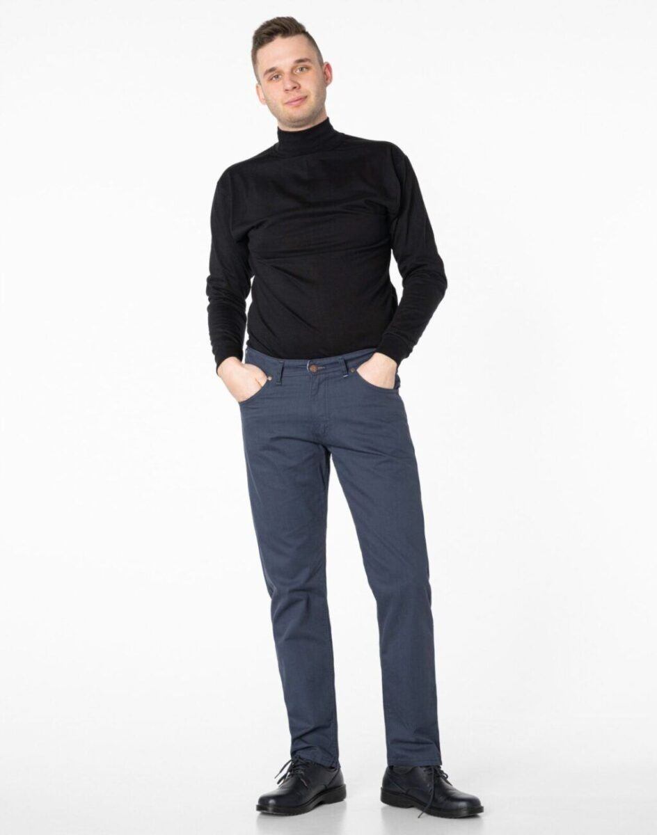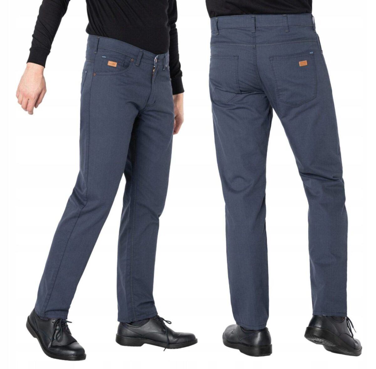 Fason typu REGULAR FIT czyli model z lekko zwężanymi nogawkami i standardowym stanem, stylowy i równocześnie wygodny, wyraźnie wysmuklający męską sylwetkę. Jest to wszechstronny krój który ma świetnie wyprofilowane nogawki i wygląda dobrze na każdym, a dzięki dodatkowi elastanu jest również wyjątkowo wygodny. Idealne nie tylko na co dzień lecz również jako element stroju do pracy. Doskonale wpisują się w światowe modowe trendy i są przy tym wygodne i trwałe. W zależności od dopasowanego do nich elementu garderoby będziesz zawsze odpowiednio ubrany na każdą okazję, zarówno na „sportowo” jak i na „elegancko” bo ta sama para spodni z marynarką czy koszulą tworzy styl bardziej formalny, natomiast z T-shirtem doskonale nadaje się na weekendowe spotkania. Idealny wybór dla mężczyzn ceniących nowoczesne rozwiązania, sportowy wygodny styl i nienaganną elegancję.