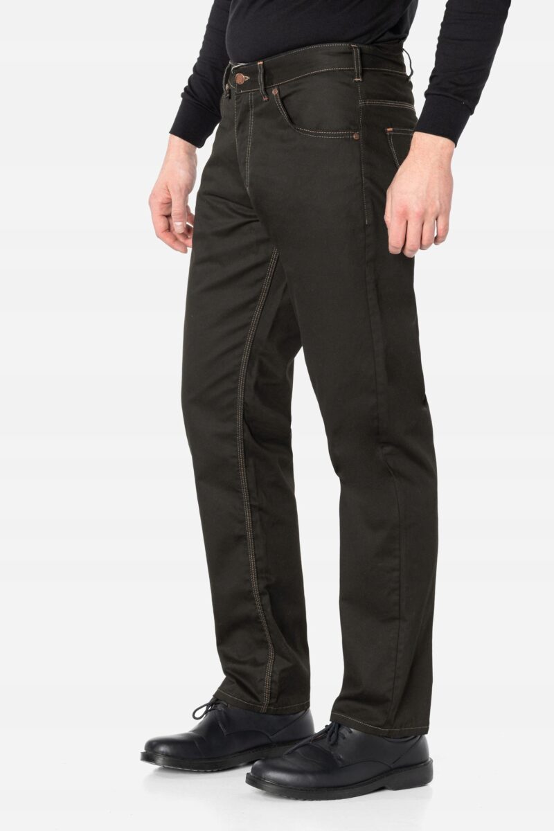 Niesłychanie wygodne i praktyczne podczas użytkowania spodnie męskie bawełniane polskiej firmy HUNTER ze standardowym stanem i klasyczną lekko zwężaną nogawką to jeden z najczęściej wybieranych modeli spodni. Wykonane z wysokiej jakości trwałej i mocnej tkaniny bawełnianej o gęstym, drobnym splocie i jednolitym wybarwieniu. Zapinane są na kryty zamek błyskawiczny i metalowy guzik sygnowany logiem firmy. Z przodu mają dwie kieszonki zaokrąglone oraz mniejszą kieszonkę tzw. bilonówkę, a na tyle klasyczne kieszenie naszywane jak w typowych spodniach jeansowych. W pasie szlufki umożliwiające stylizacje z paskiem. Najbardziej podatne na uszkodzenia miejsca wzmocnione są dodatkowymi przeszyciami oraz nitami.