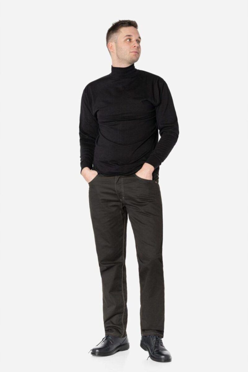 Fason typu REGULAR FIT czyli model z lekko zwężanymi nogawkami i standardowym stanem, stylowy i równocześnie wygodny, wyraźnie wysmuklający męską sylwetkę. Jest to wszechstronny krój który ma świetnie wyprofilowane nogawki i wygląda dobrze na każdym, a dzięki dodatkowi elastanu jest również wyjątkowo wygodny. Idealne nie tylko na co dzień lecz również jako element stroju do pracy. Doskonale wpisują się w światowe modowe trendy i są przy tym wygodne i trwałe. W zależności od dopasowanego do nich elementu garderoby będziesz zawsze odpowiednio ubrany na każdą okazję, zarówno na „sportowo” jak i na „elegancko” bo ta sama para spodni z marynarką czy koszulą tworzy styl bardziej formalny, natomiast z T-shirtem doskonale nadaje się na weekendowe spotkania. Idealny wybór dla mężczyzn ceniących nowoczesne rozwiązania, sportowy wygodny styl i nienaganną elegancję.