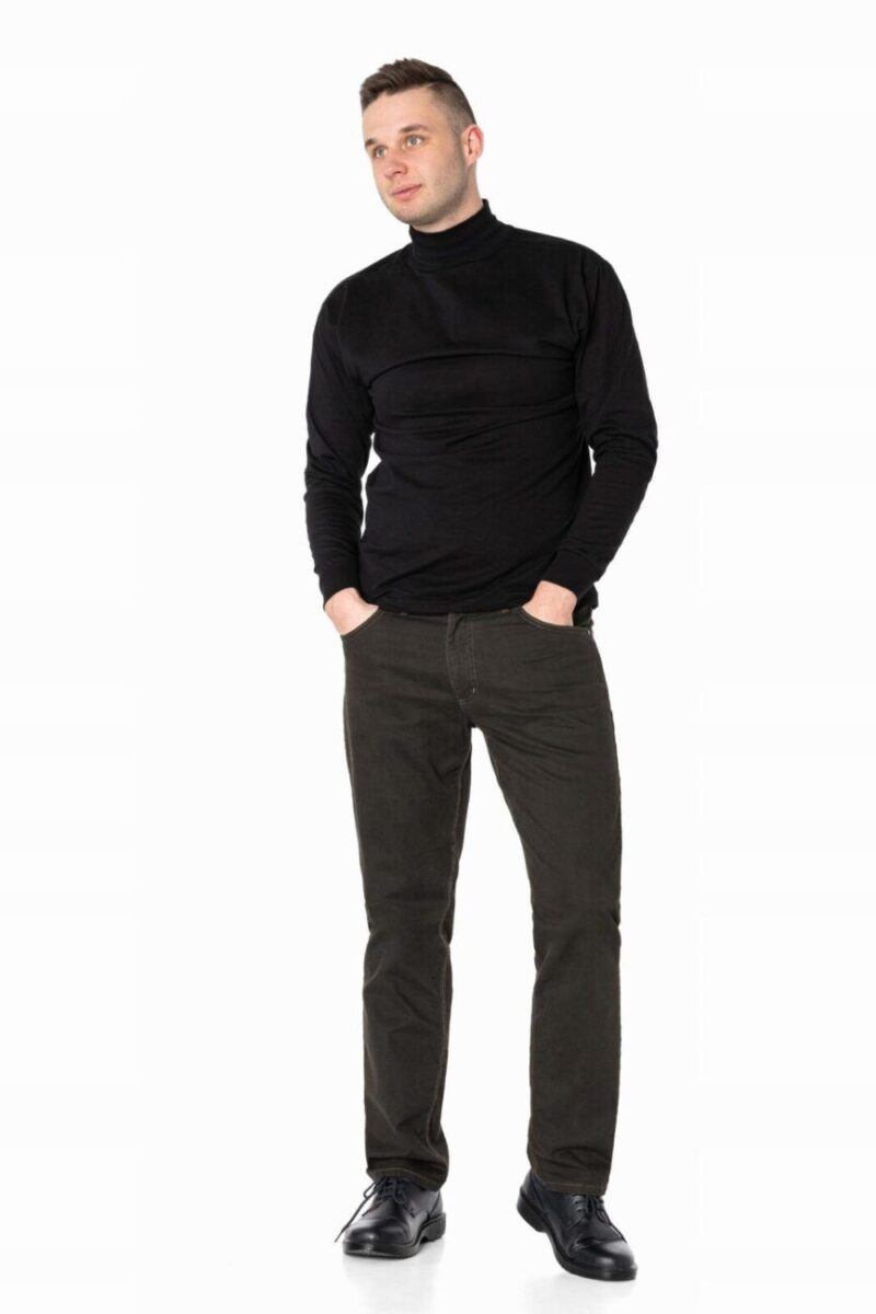 Fason typu REGULAR FIT czyli model z lekko zwężanymi nogawkami i standardowym stanem, stylowy i równocześnie wygodny, wyraźnie wysmuklający męską sylwetkę. Jest to wszechstronny krój który ma świetnie wyprofilowane nogawki i wygląda dobrze na każdym, a dzięki dodatkowi elastanu jest również wyjątkowo wygodny. Idealne nie tylko na co dzień lecz również jako element stroju do pracy. Doskonale wpisują się w światowe modowe trendy i są przy tym wygodne i trwałe. W zależności od dopasowanego do nich elementu garderoby będziesz zawsze odpowiednio ubrany na każdą okazję, zarówno na „sportowo” jak i na „elegancko” bo ta sama para spodni z marynarką czy koszulą tworzy styl bardziej formalny, natomiast z T-shirtem doskonale nadaje się na weekendowe spotkania. Idealny wybór dla mężczyzn ceniących nowoczesne rozwiązania, sportowy wygodny styl i nienaganną elegancję.