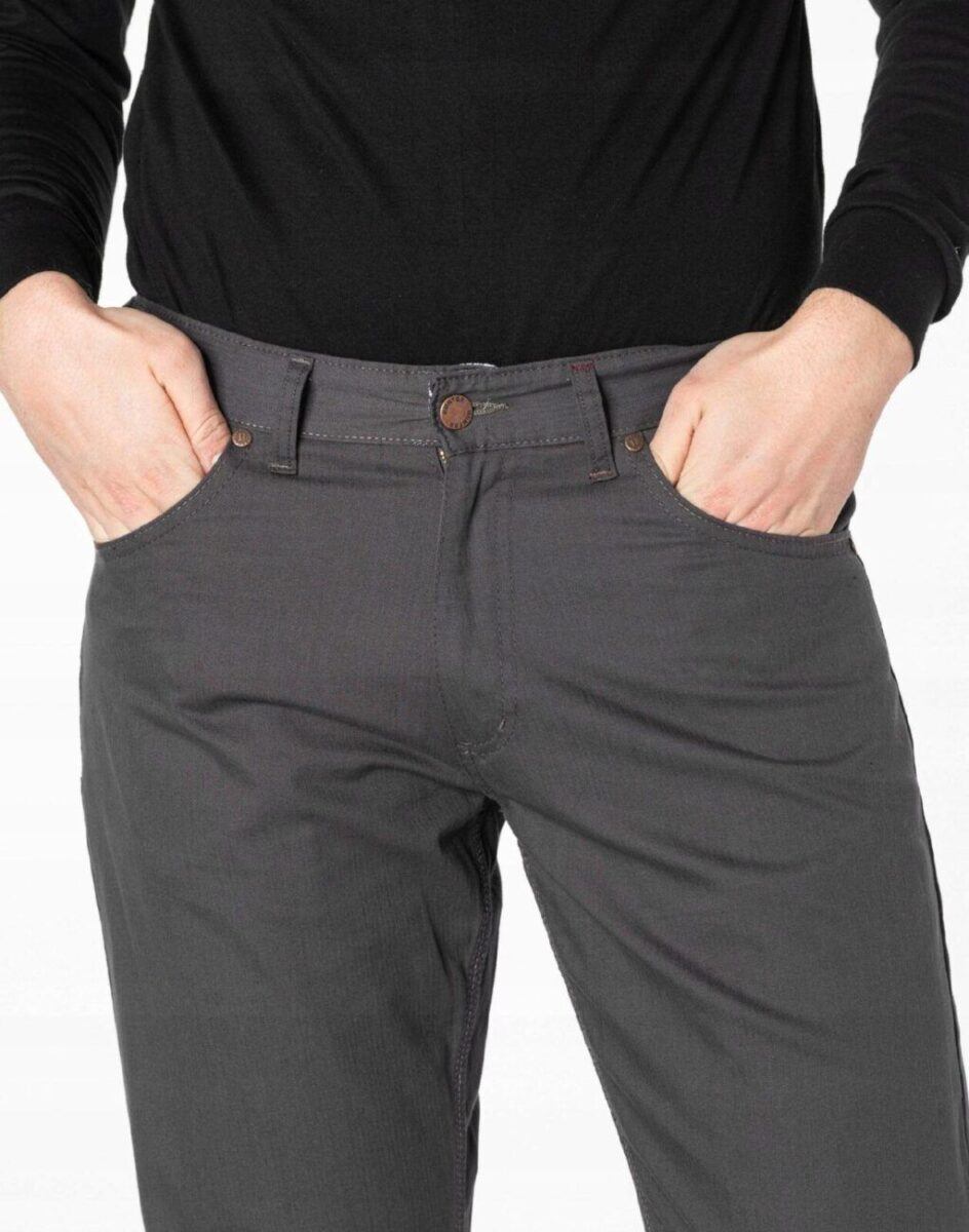 Fason typu REGULAR FIT czyli model z lekko zwężanymi nogawkami i standardowym stanem, stylowy i równocześnie wygodny, wyraźnie wysmuklający męską sylwetkę. Jest to wszechstronny krój który ma świetnie wyprofilowane nogawki i wygląda dobrze na każdym, a dzięki dodatkowi elastanu jest również wyjątkowo wygodny. Idealne nie tylko na co dzień lecz również jako element stroju do pracy. Doskonale wpisują się w światowe modowe trendy i są przy tym wygodne i trwałe. W zależności od dopasowanego do nich elementu garderoby będziesz zawsze odpowiednio ubrany na każdą okazję, zarówno na „sportowo” jak i na „elegancko” bo ta sama para spodni z marynarką czy koszulą tworzy styl bardziej formalny, natomiast z T-shirtem doskonale nadaje się na weekendowe spotkania. Idealny wybór dla mężczyzn ceniących nowoczesne rozwiązania, sportowy wygodny styl i nienaganną elegancję.