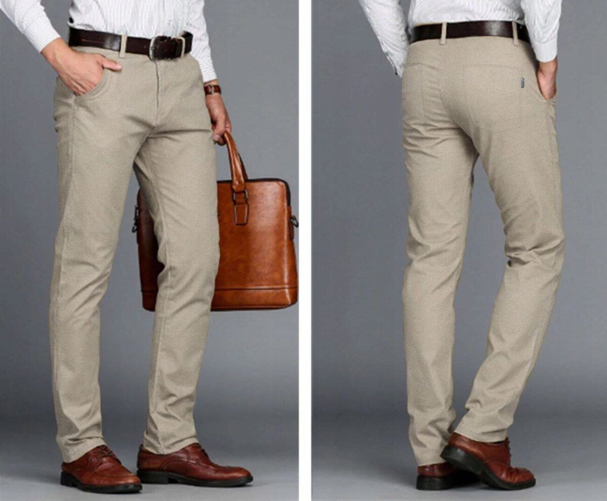- Nogawka: klasyczna, lekko zwężana bez kantki