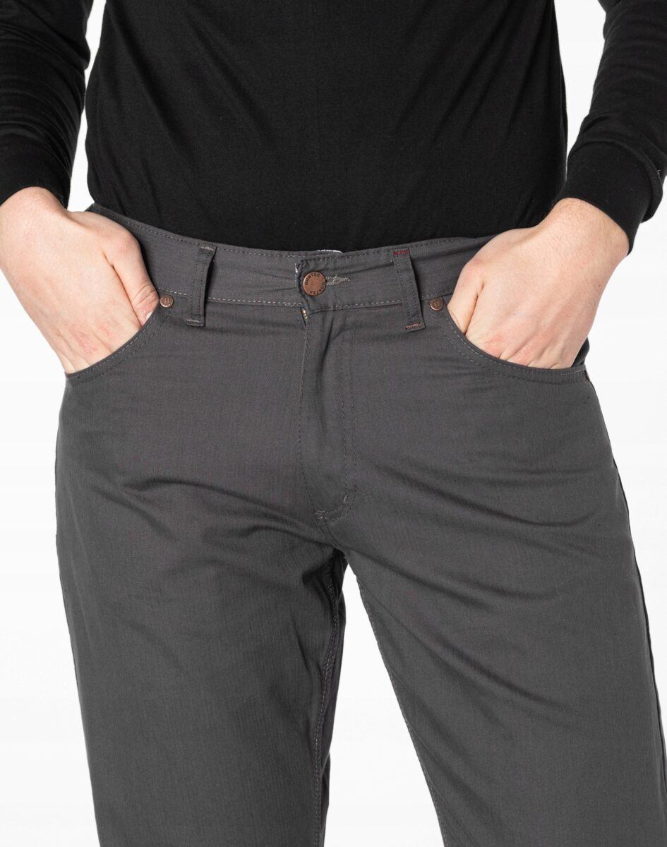 Fason typu REGULAR FIT czyli model z lekko zwężanymi nogawkami i standardowym stanem, stylowy i równocześnie wygodny, wyraźnie wysmuklający męską sylwetkę. Jest to wszechstronny krój który ma świetnie wyprofilowane nogawki i wygląda dobrze na każdym, a dzięki dodatkowi elastanu jest również wyjątkowo wygodny. Idealne nie tylko na co dzień lecz również jako element stroju do pracy. Doskonale wpisują się w światowe modowe trendy i są przy tym wygodne i trwałe. W zależności od dopasowanego do nich elementu garderoby będziesz zawsze odpowiednio ubrany na każdą okazję, zarówno na „sportowo” jak i na „elegancko” bo ta sama para spodni z marynarką czy koszulą tworzy styl bardziej formalny, natomiast z T-shirtem doskonale nadaje się na weekendowe spotkania. Idealny wybór dla mężczyzn ceniących nowoczesne rozwiązania, sportowy wygodny styl i nienaganną elegancję.