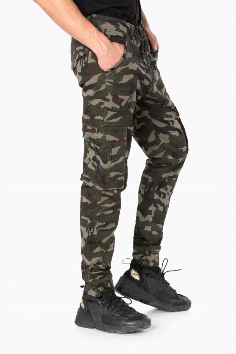 Wygodne spodnie męskie typu bojówki moro – militarny styl z 7 praktycznymi kieszeniami
