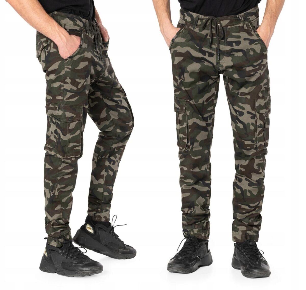Wygodne spodnie męskie typu bojówki moro – militarny styl z 7 praktycznymi kieszeniami