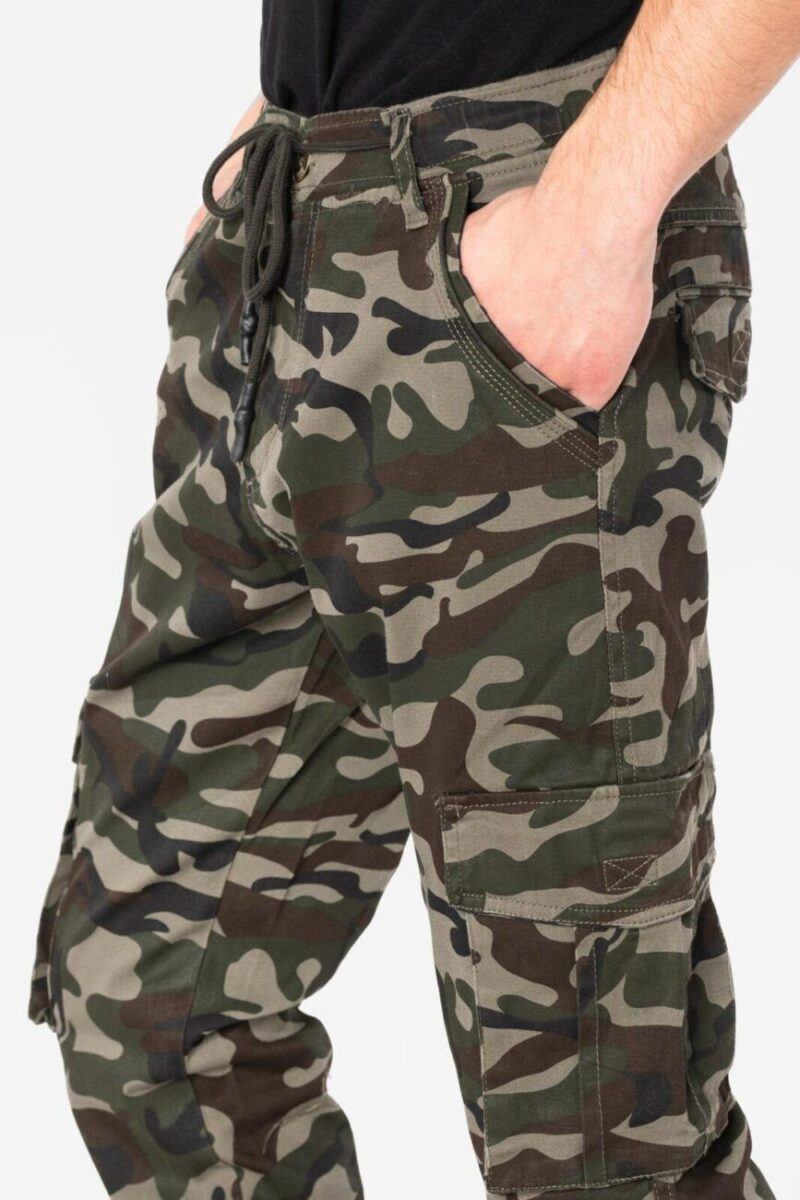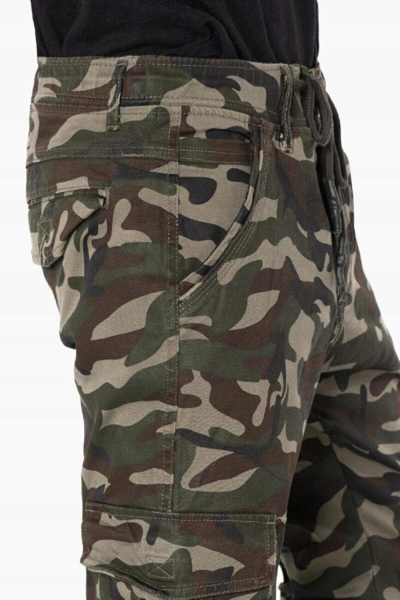 Wygodne spodnie męskie typu bojówki moro – militarny styl z 7 praktycznymi kieszeniami