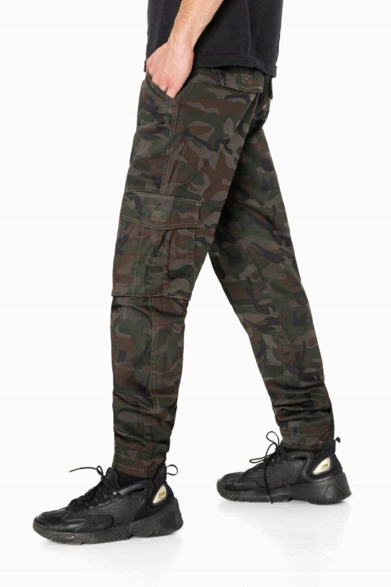 Wygodne spodnie męskie typu bojówki moro – militarny styl z 7 praktycznymi kieszeniami