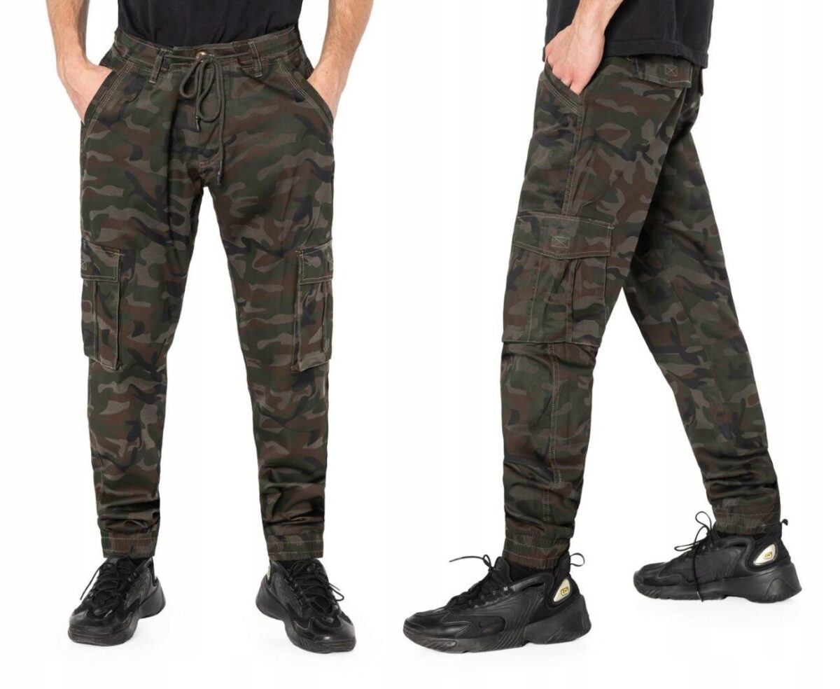 Wygodne spodnie męskie typu bojówki moro – militarny styl z 7 praktycznymi kieszeniami