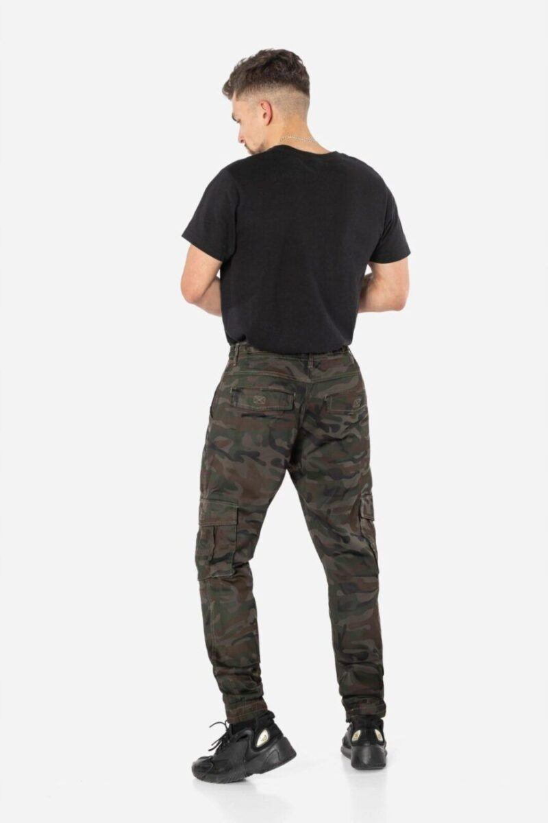 Wygodne spodnie męskie typu bojówki moro – militarny styl z 7 praktycznymi kieszeniami