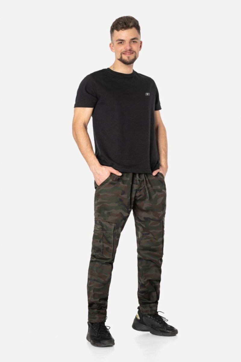 Wygodne spodnie męskie typu bojówki moro – militarny styl z 7 praktycznymi kieszeniami