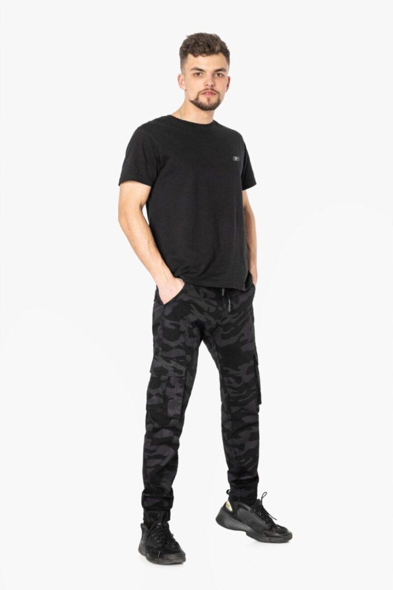 Wygodne spodnie męskie typu bojówki moro – militarny styl z 7 praktycznymi kieszeniami