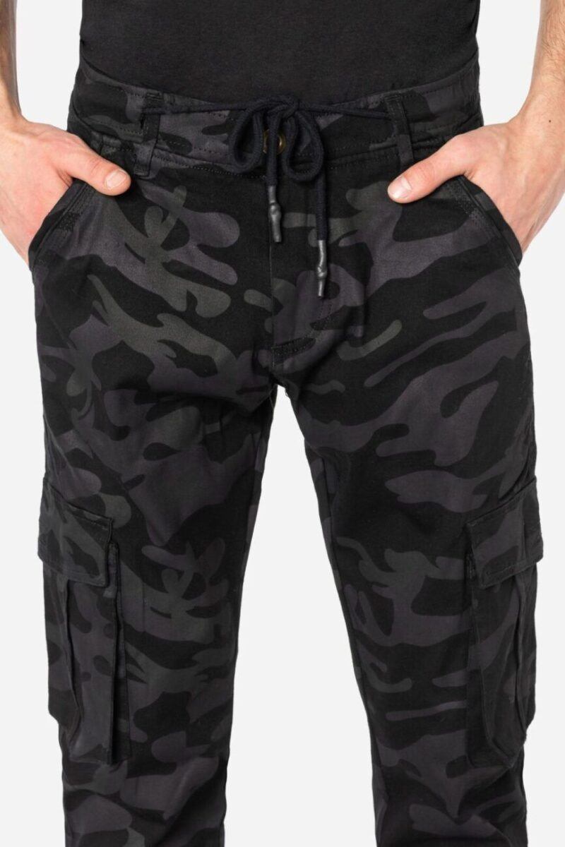 Wygodne spodnie męskie typu bojówki moro – militarny styl z 7 praktycznymi kieszeniami