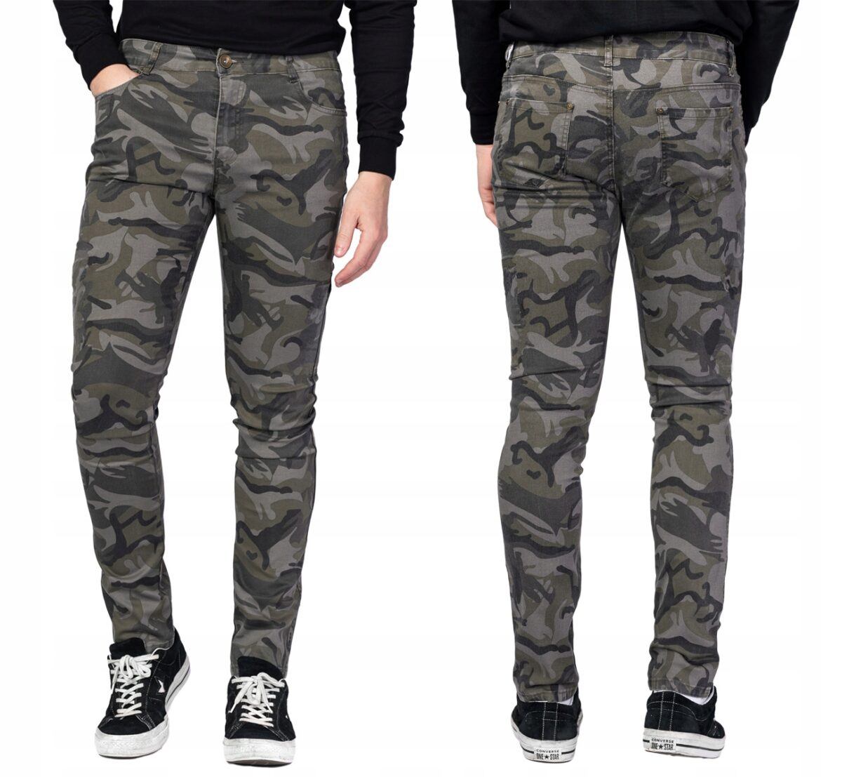 Super modne spodnie męskie typu rurki moro – militarny styl