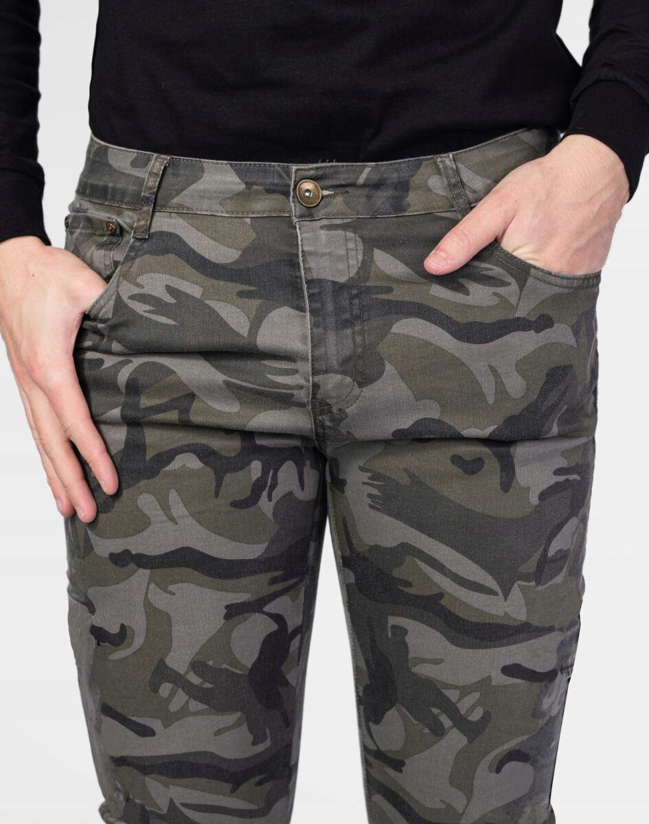 Wyjątkowe spodnie dla fanów militarnego stylu smart casual. Modny, sprawdzony krój i elastyczny materiał zapewnią Ci komfort i wygodę użytkowania. Unikalnego designu dodaje im najmodniejszy w tym sezonie wzór moro Camo.