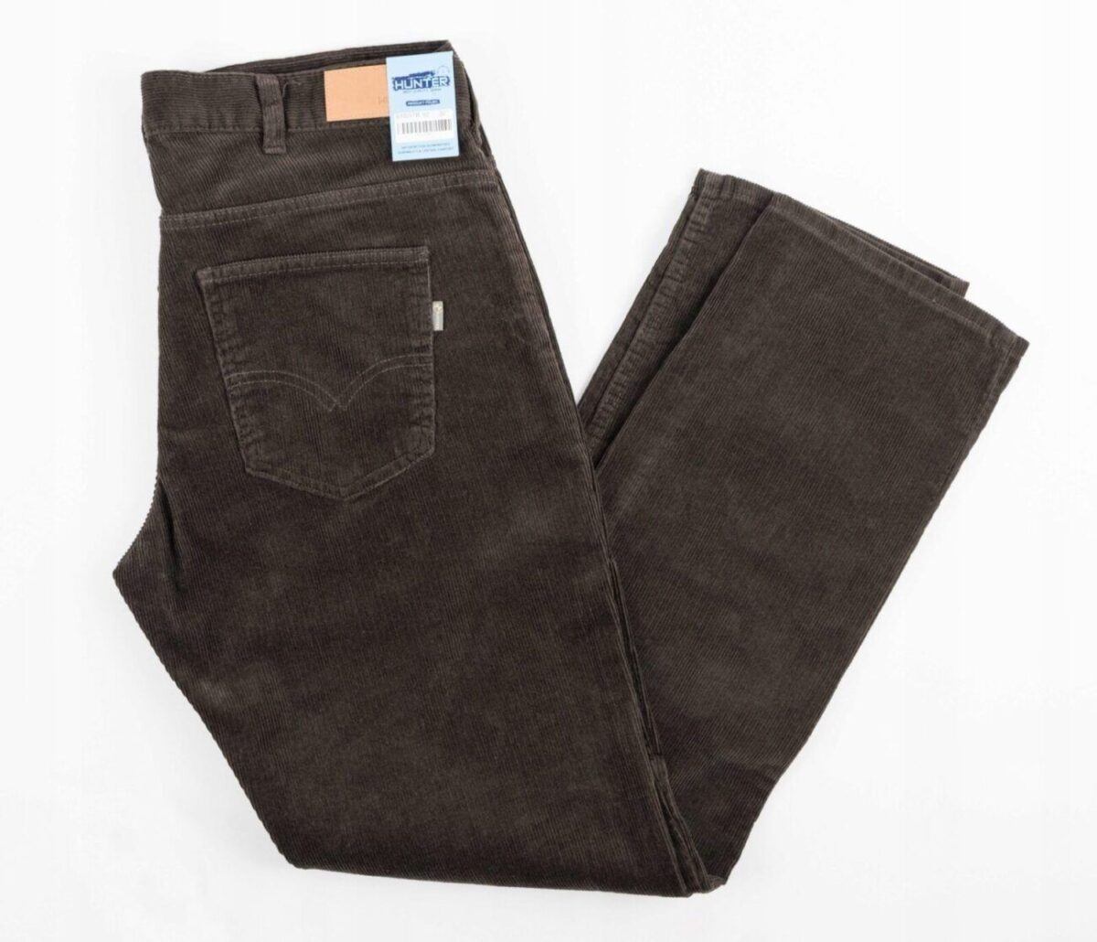 Ciepłe spodnie sztruksowe męskie polskiej firmy HUNTER z prostą nogawką Regular Fit