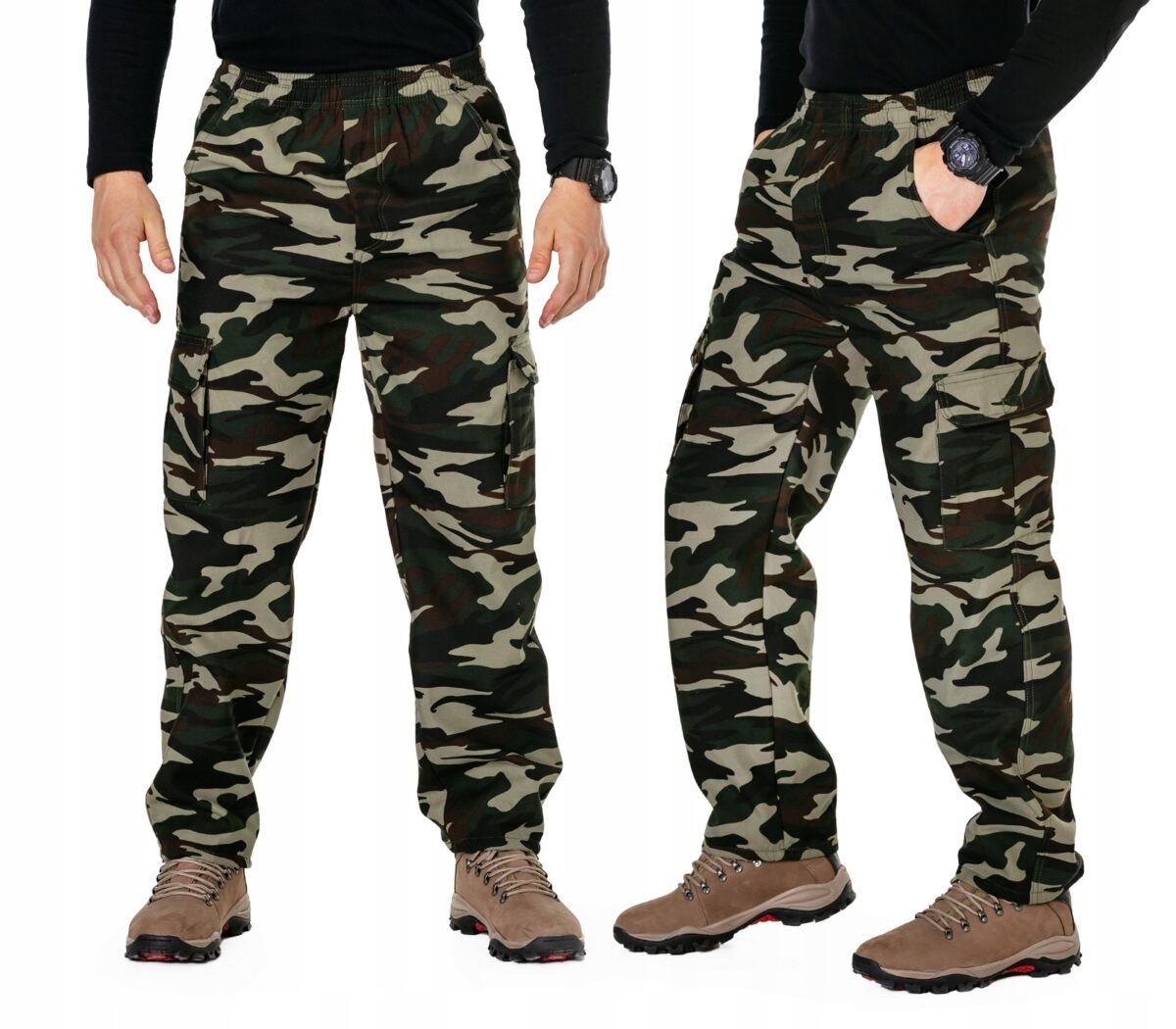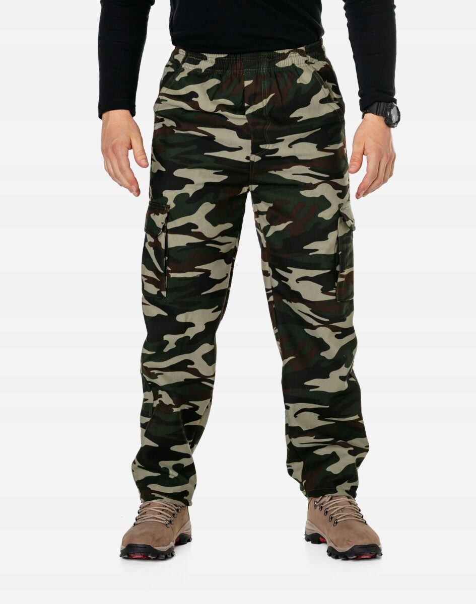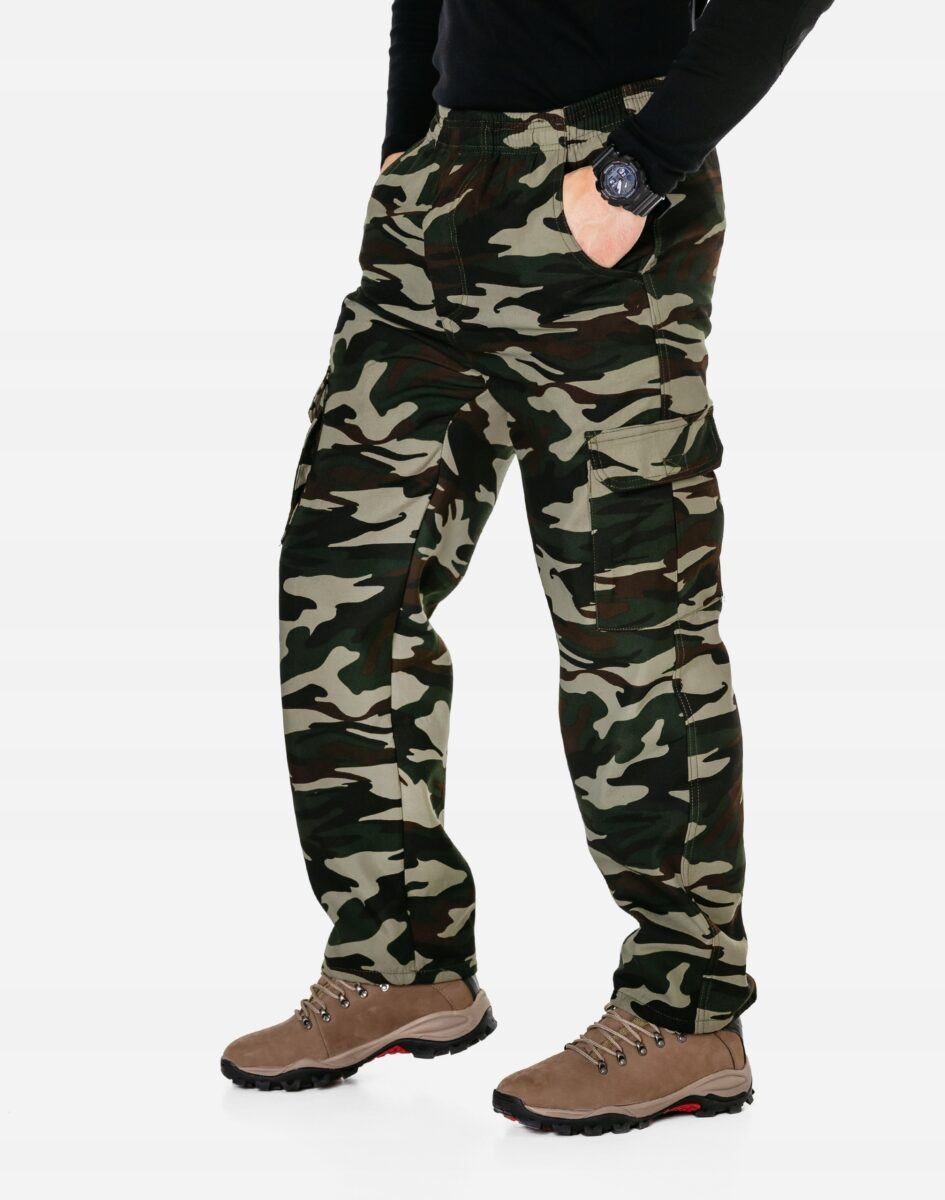 Ciepłe spodnie dresowe męskie typu Bojówki Moro #81007 to komfortowo skrojony model z klasycznymi lekko zwężanymi nogawkami. Z założenia wyróżniają się dużą wygodą a dopasowanie w pasie zapewnia szeroki, elastyczny pas ściągający oraz dodatkowo wpuszczona w pasek taśma regulacyjna z możliwością jej zawiązywania. Na bokach spodni znajdują się dwie wpuszczane kieszenie na dłonie. Z tyłu jedna naszywana kieszeń typu Cargo kryta patką zapinana na rzep. Na udach po 2 obszerne naszywane kieszenie, typu Cargo kryte patkami zapinane na rzepy. Spodnie nie uciskają i nie ograniczają ruchów, gwarantują komfort i wygodę ich użytkownikowi w każdych warunkach.