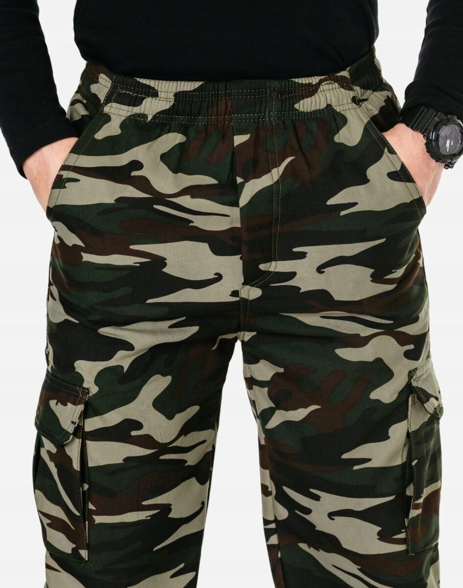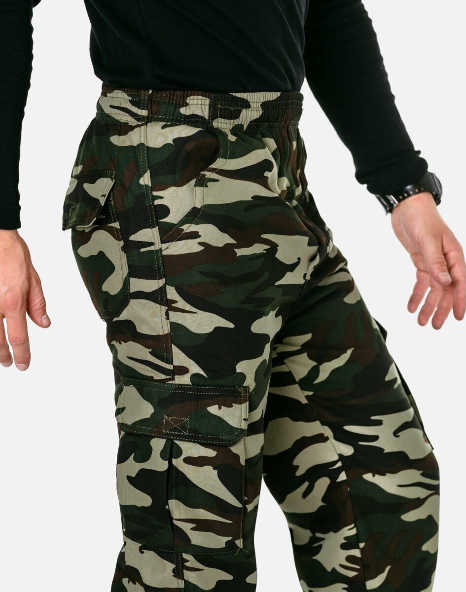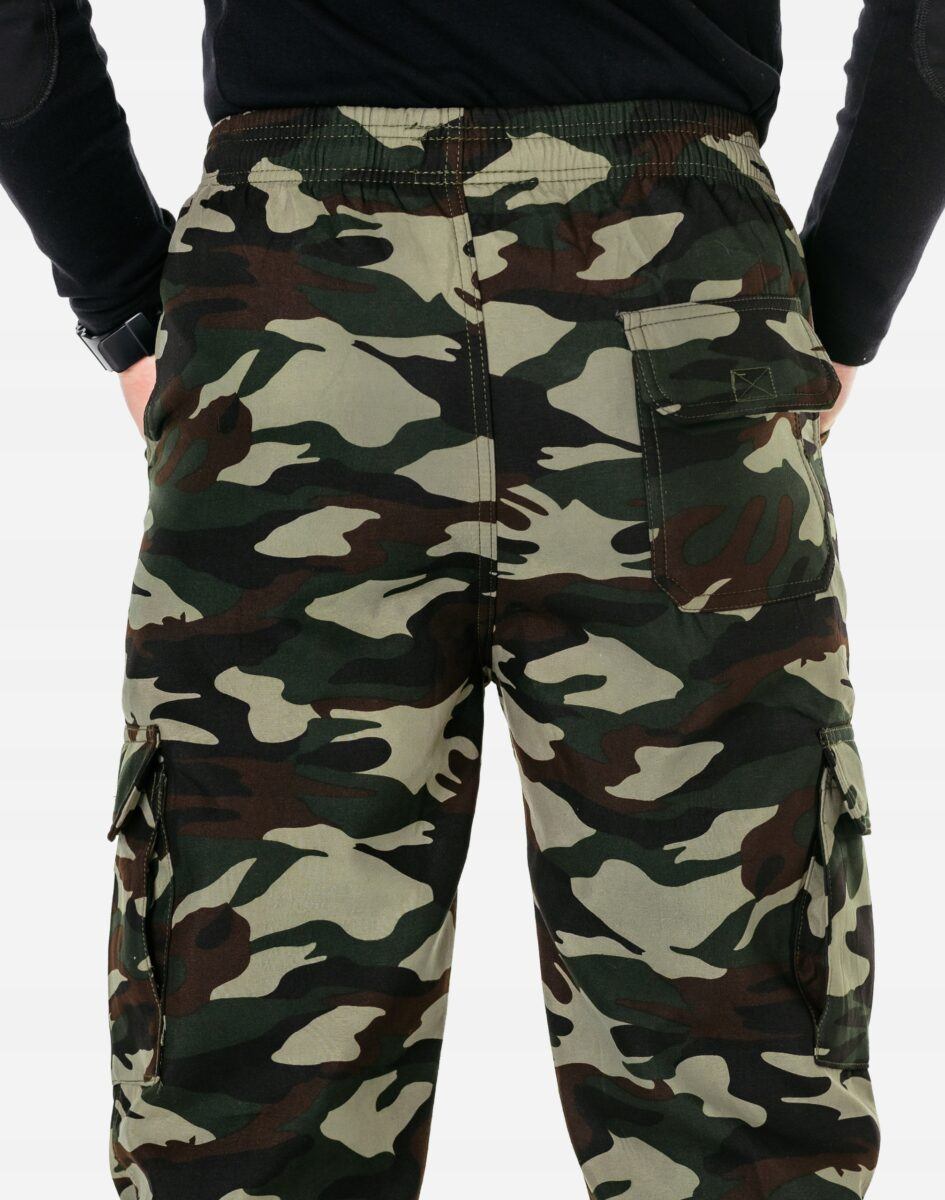 Ciepłe Spodnie Dresowe Męskie Typu Bojówki Moro ze Ściągaczem