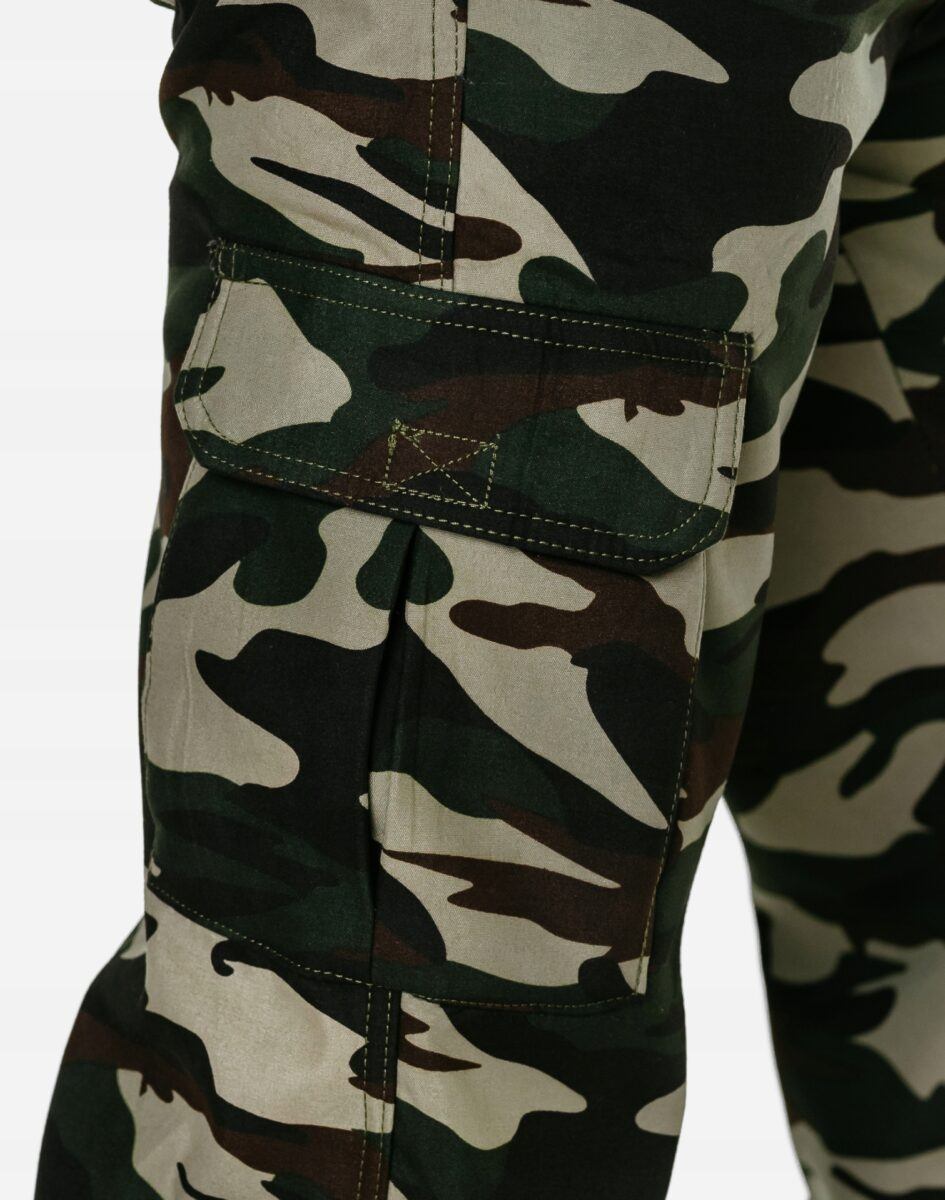- 1 naszywana kieszeń typu Cargo kryta patką zapinana na rzep z tyłu spodni