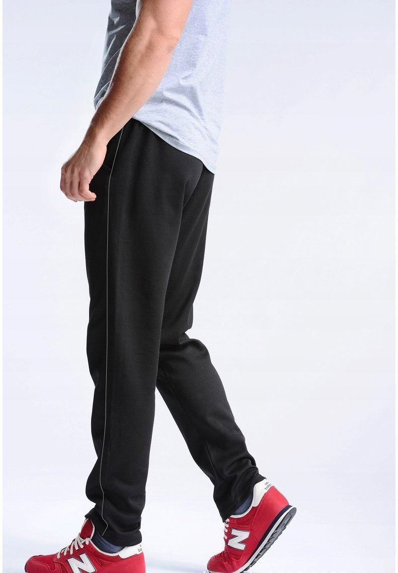 Spodnie męskie dresowe wzór 0668 to komfortowo skrojony model w sportowym stylu z klasycznymi prostymi nogawkami ozdobionymi wąskim lampasem. Z założenia wyróżniają się dużą wygodą a dopasowanie w pasie zapewnia wszyta w spodnie szeroka guma oraz dodatkowo wpuszczona w pasek taśma regulacyjna z możliwością jej zawiązywania. Na bokach dwie wpuszczane kieszenie na dłonie. Ergonomiczny krój spodni nie ogranicza swobody ruchów a właściwe dla odzieży sportowej proporcje surowcowe i niewielka gramatura wpływają pozytywnie na komfort użytkowania.