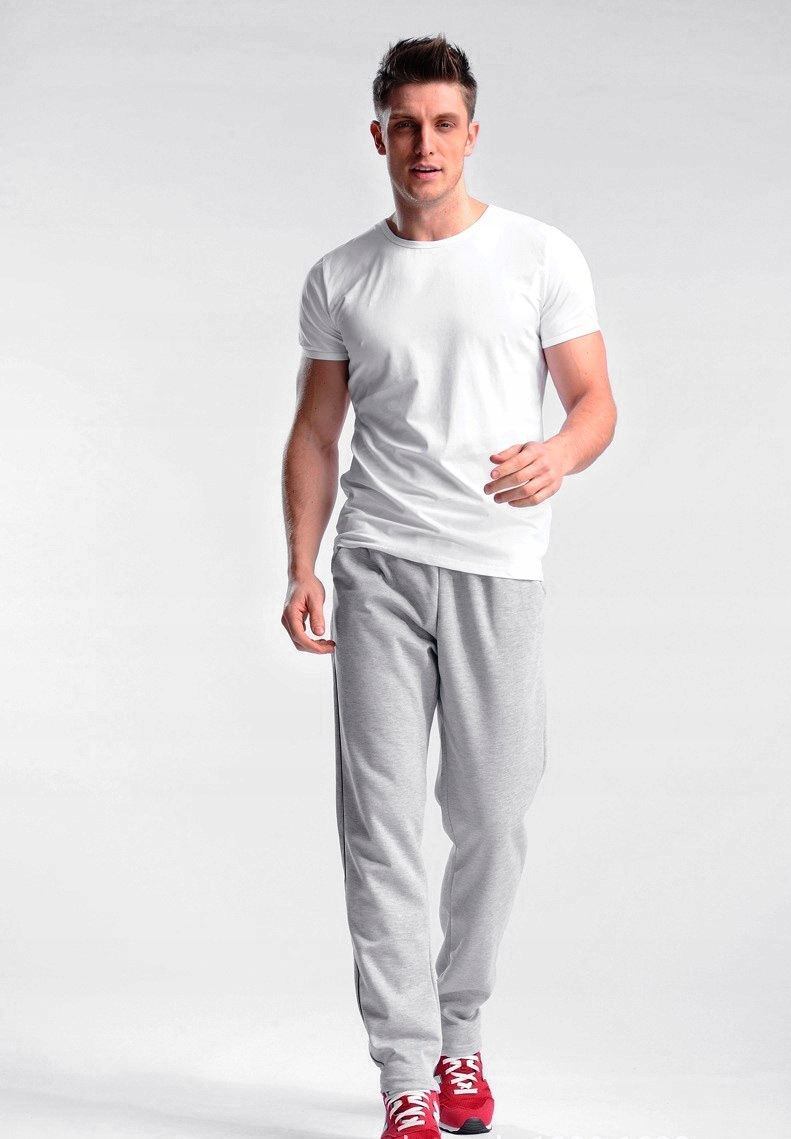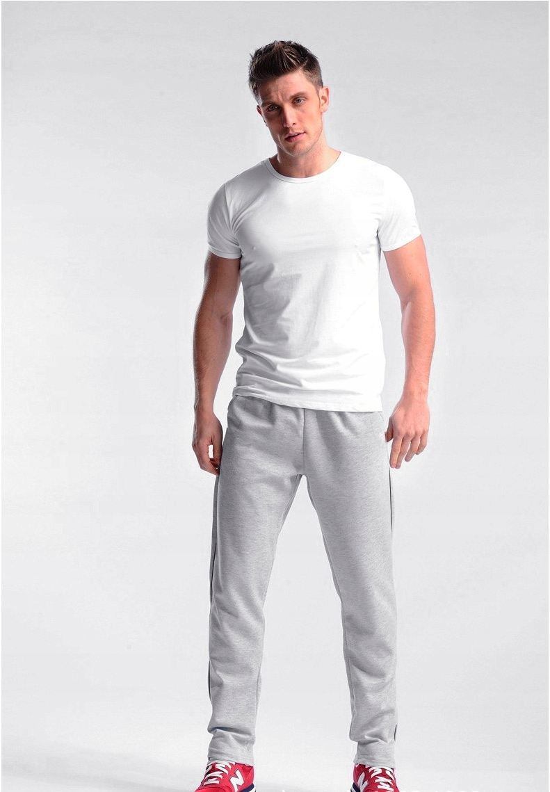 Spodnie męskie dresowe wzór 0668 to komfortowo skrojony model w sportowym stylu z klasycznymi prostymi nogawkami ozdobionymi wąskim lampasem. Z założenia wyróżniają się dużą wygodą a dopasowanie w pasie zapewnia wszyta w spodnie szeroka guma oraz dodatkowo wpuszczona w pasek taśma regulacyjna z możliwością jej zawiązywania. Na bokach dwie wpuszczane kieszenie na dłonie. Ergonomiczny krój spodni nie ogranicza swobody ruchów a właściwe dla odzieży sportowej proporcje surowcowe i niewielka gramatura wpływają pozytywnie na komfort użytkowania.
