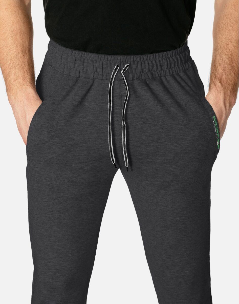 Wykonane z ciepłej dzianiny dresowej o dużej gęstości (320 g/m2 ) z dodatkiem poliestru zapewniającej maksymalną wygodę i komfort ich użytkowania. Naturalna bawełna gwarantuje wspaniałą izolację cieplną, wchłanianie potu i oddychanie skóry a sam materiał odznacza się dużą miękkością. Dodatek poliestru to gwarancja pełnej swobody ruchów oraz stabilności rozmiarów i kolorów po wielokrotnym praniu. Wewnętrzna strona spodni posiada wykończenie typu „MESCH” (fabrycznie wykończona jest miłym w dotyku i przyjemnym dla ciała meszkiem tzw. „szczotkowana”) zapewniające bardzo przyjemny kontakt ze skórą oraz komfort cieplny. Takie wykończenie wewnętrznej strony spodni zapewnia bardzo wysoki wskaźnik ochrony termicznej jak również zdecydowanie podnosi komfort użytkowania jesienią a zwłaszcza zimą. Zewnętrzna powierzchnia spodni gładka. Ergonomiczny krój nie ogranicza swobody ruchów a właściwe dla odzieży sportowej proporcje surowcowe wpływają pozytywnie na wygodę użytkowania. Możesz w nich chodzić na co dzień, idealnie nadają się również do uprawiania zimowych dyscyplin sportu i rekreacji. Doskonale sprawdzą się zarówno na wycieczkach, spacerach w chłodniejsze i mroźne dni, jak i w domowym zaciszu przy telewizorze.