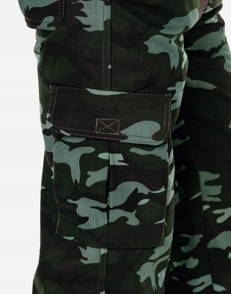 Uszyte z solidnej i mocnej tkaniny bawełnianej o gęstym zapewniającym dużą wytrzymałość splocie, co zwiększa odporność na uszkodzenia mechaniczne oraz szybkość transportu wilgoci z powierzchni ciała na zewnątrz. Z założenia wyróżniają się dużą wygodą a dopasowanie w pasie zapewnia szeroki, elastyczny pas ściągający oraz dodatkowo wpuszczona w pasek taśma regulacyjna z możliwością jej zawiązywania. Z przodu mają dwie klasyczne wpuszczanie kieszenie na dłonie, z tyłu naszywaną kieszeń typu Cargo krytą patką zapinaną na rzep. Na udach 2 duże naszywane kieszenie transportowe typu Cargo kryte patką zapinaną na rzepy. Wygodny militarny krój typu bojówki pozwala na pełną swobodę ruchów, co daje użytkownikowi wygodę przy siadaniu i zapewnia ogromny komfort noszenia. Najbardziej podatne na uszkodzenia miejsca wzmocnione są dodatkowymi podwójnymi przeszyciami.