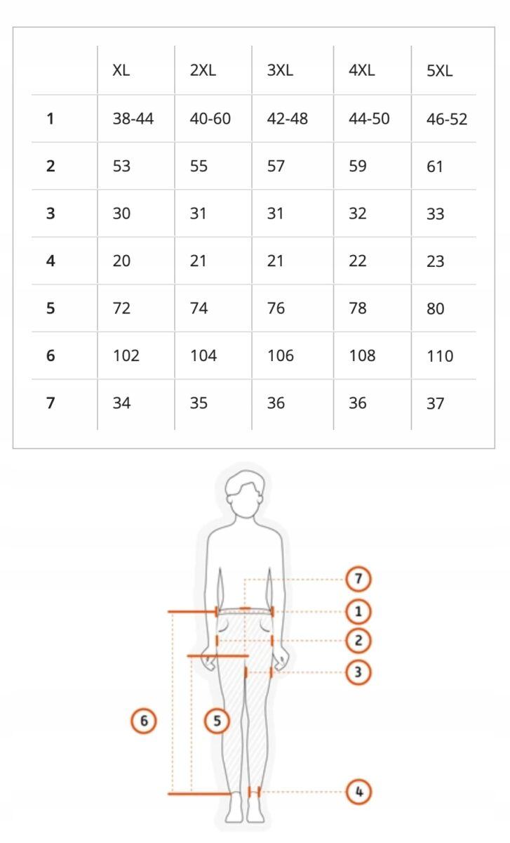Proszę nie sugerować się rozmiarem podanym na metce przez producenta ( np. XL, 3XL czy 5XL) ponieważ różne firmy stosują bardzo różne oznaczenia rozmiaru. Najlepiej jest zmierzyć swoje stare spodnie dokładnie centymetrem (bez rozciągania i po rozciągnięciu gumki w pasie) a następnie wybrać odpowiedni rozmiar podany w centymetrach z tabeli na naszych aukcjach
