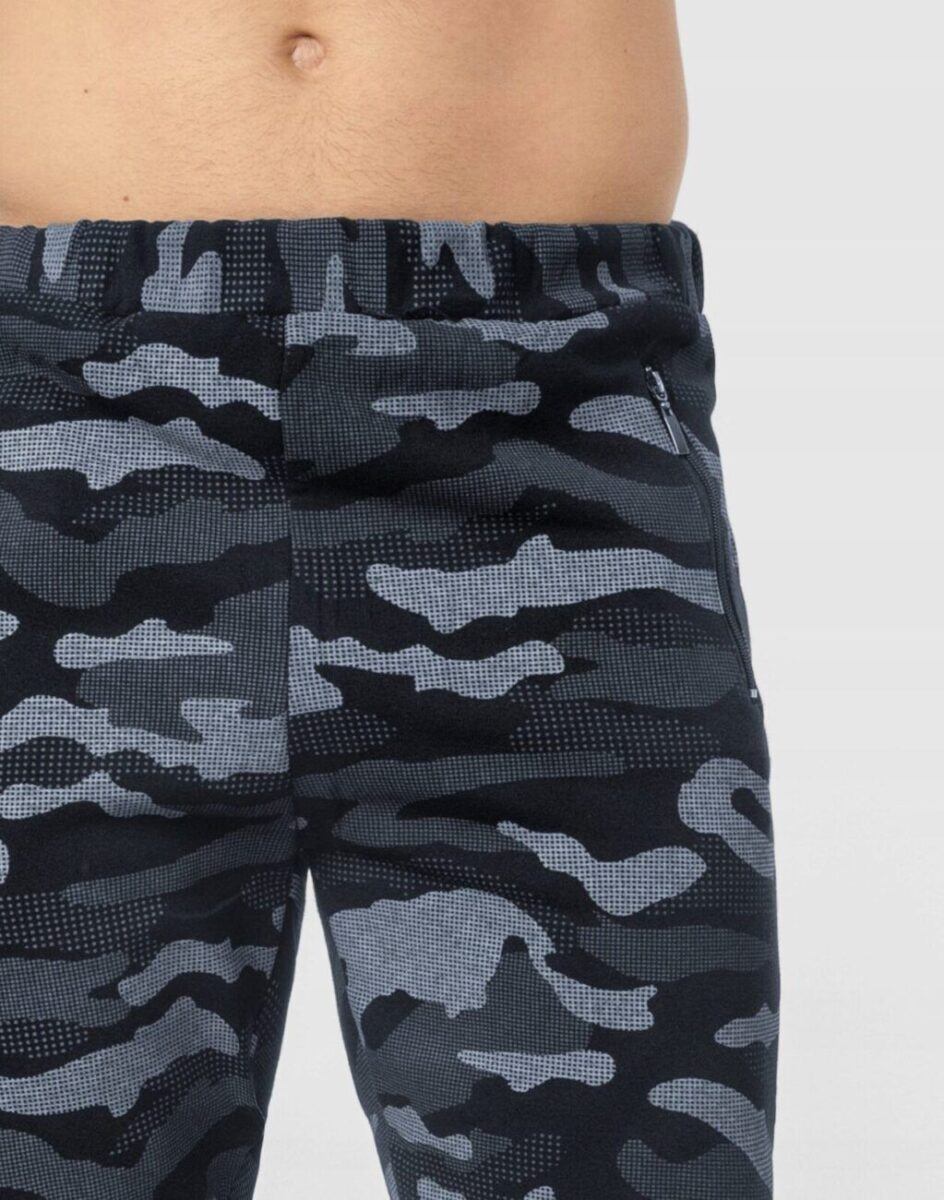 Ocieplane spodnie dresowe męskie wzór militarny moro ze ściągaczem