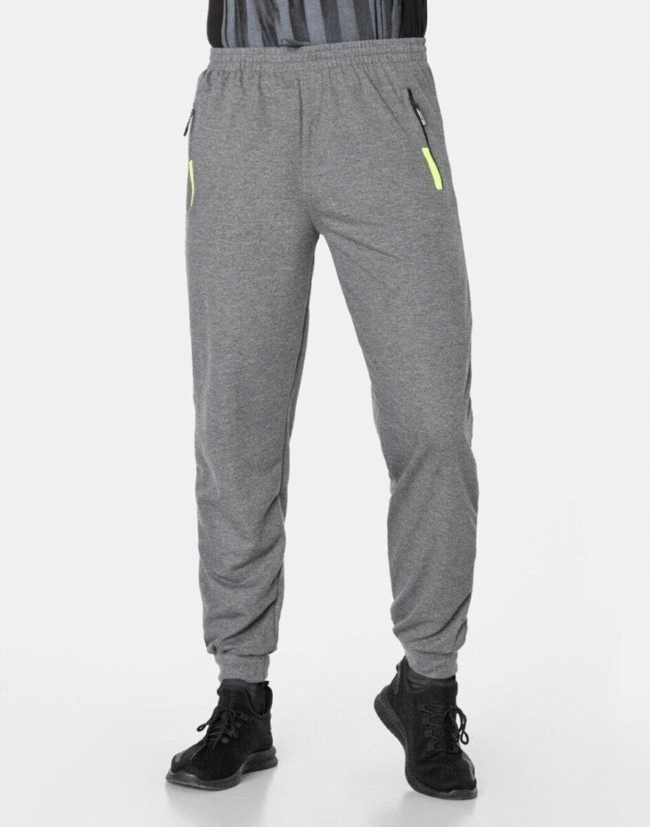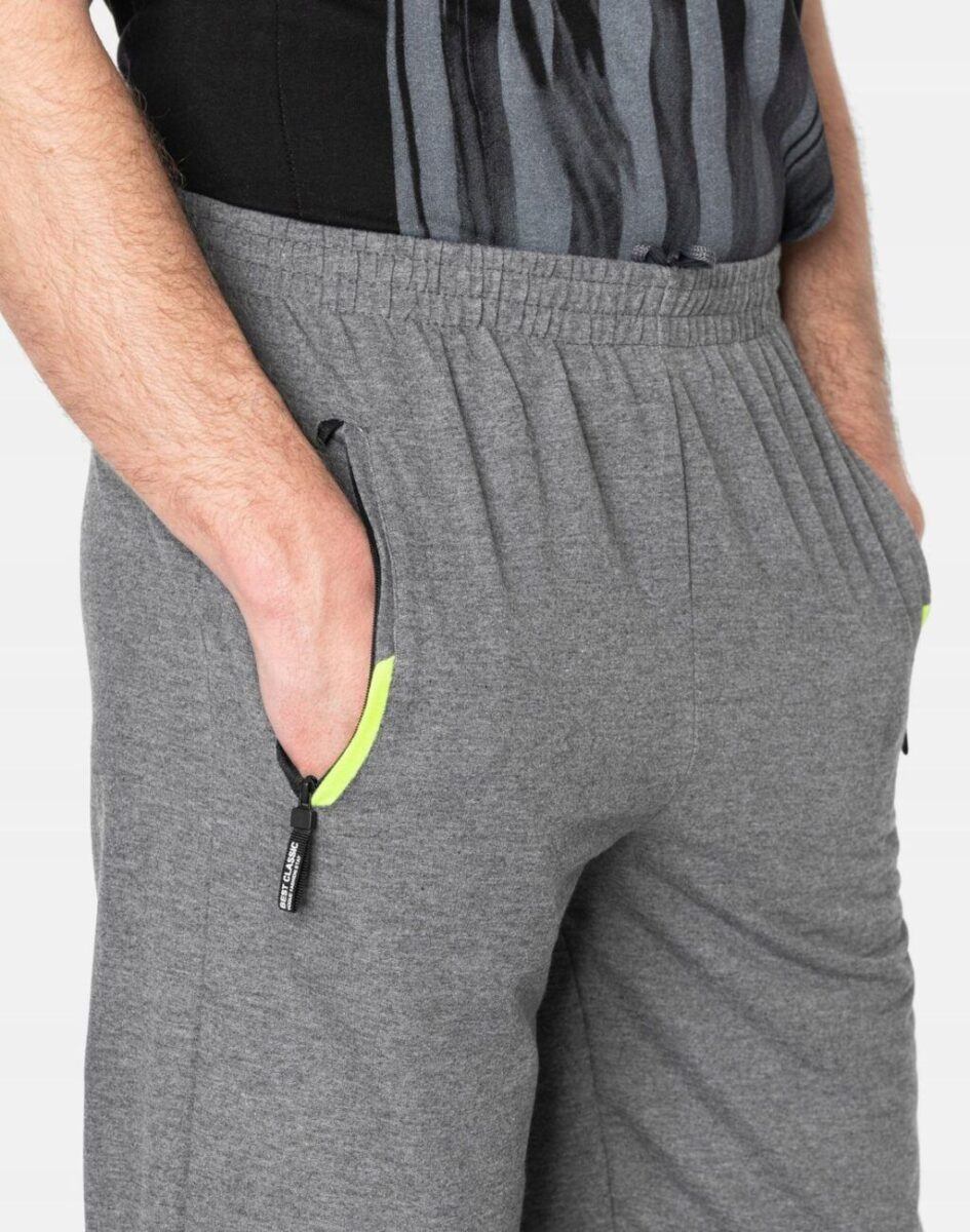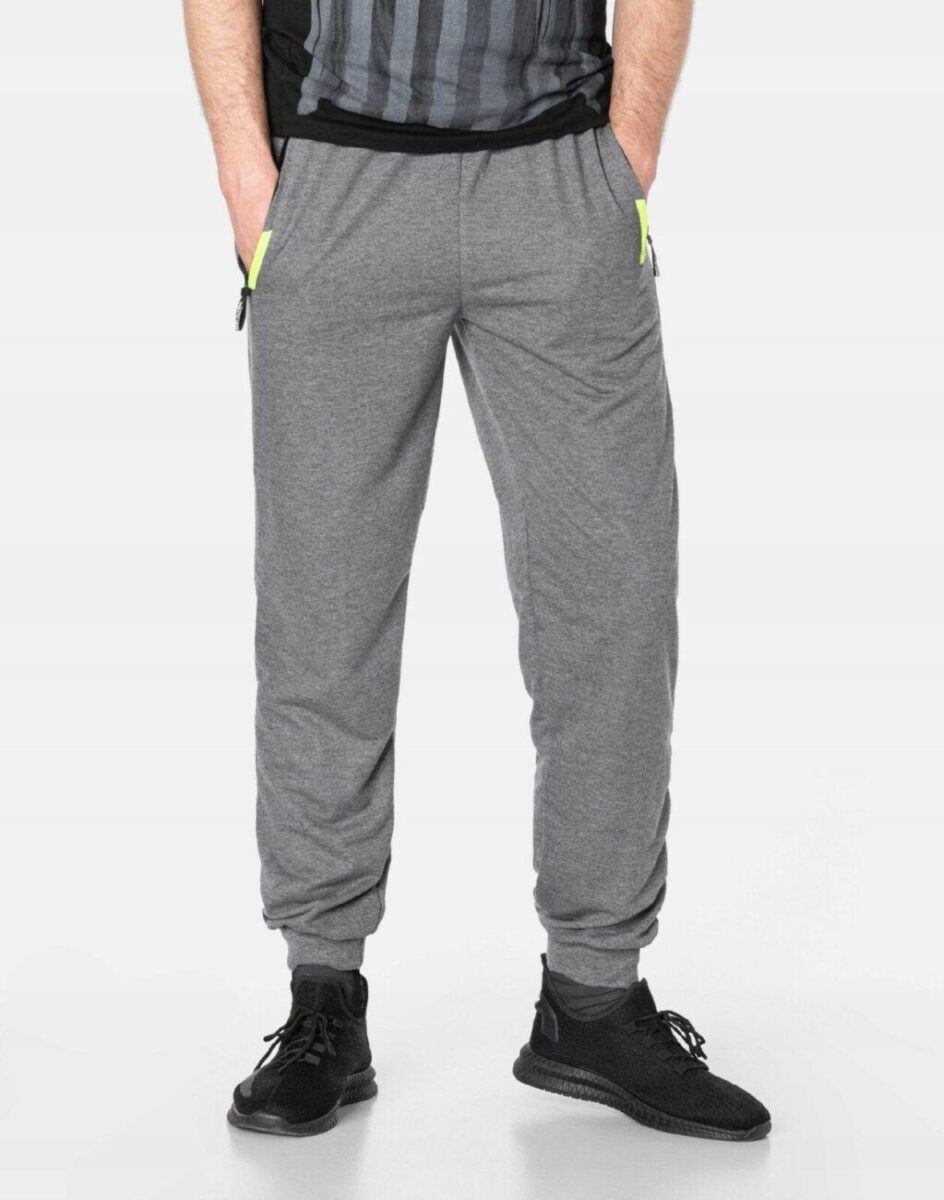 Spodnie dresowe męskie 46092 to komfortowo skrojony model w sportowym stylu z lekko zwężanymi nogawkami zakończonymi ściągaczem. Z założenia wyróżniają się dużą wygodą, a dopasowanie w pasie zapewnia szeroki, elastyczny pas ściągający oraz dodatkowo wpuszczona w pasek taśma regulacyjna z możliwością jej zawiązywania. Na bokach spodni dwie wpuszczane kieszenie na dłonie zasuwane na zamki błyskawiczne. Tył gładki bez kieszeni. Ergonomiczny krój spodni nie ogranicza swobody ruchów a właściwe dla odzieży sportowej proporcje surowcowe wpływają pozytywnie na komfort użytkowania. Sylwetka użytkownika staje się w nich optycznie smuklejsza i nabiera dynamicznego sportowego wyglądu.