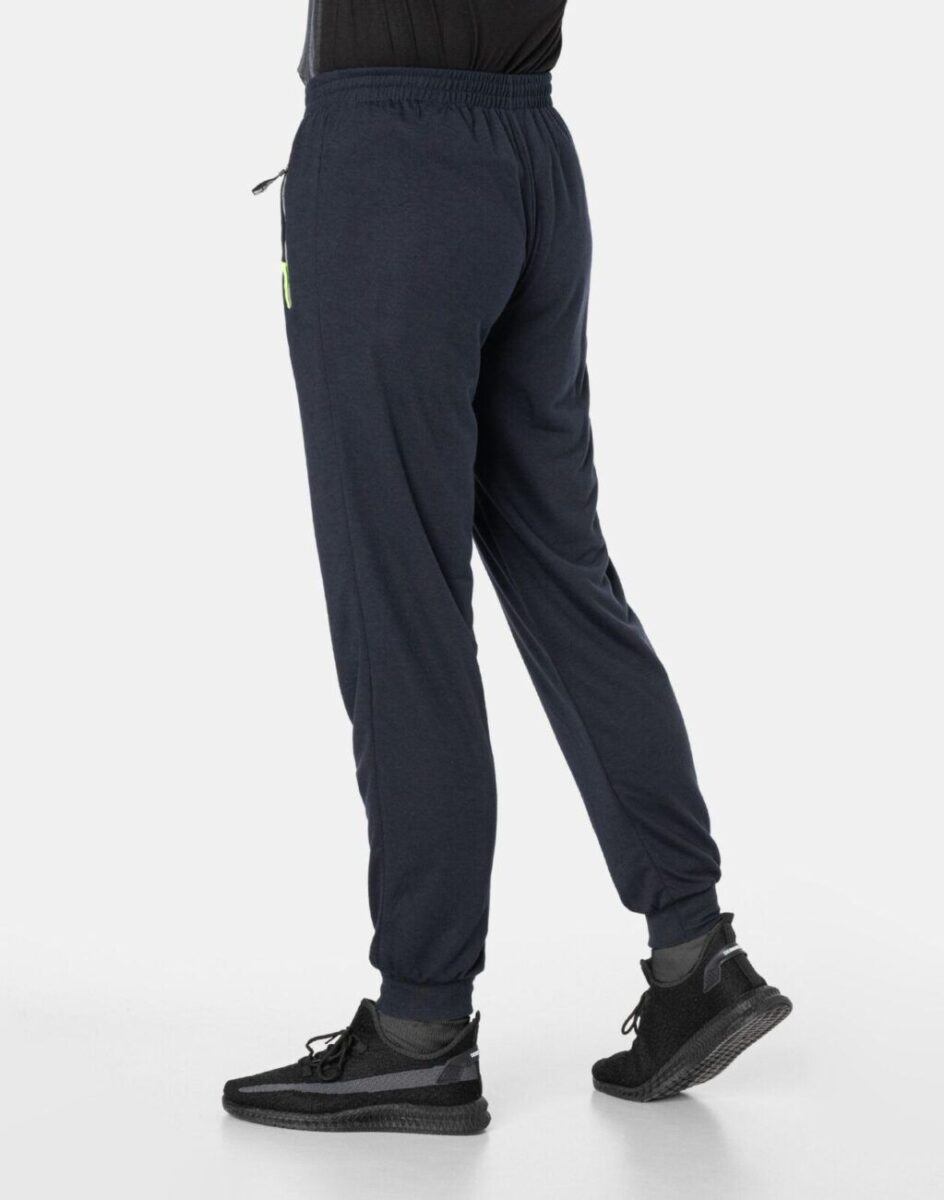 Spodnie dresowe męskie 46092 to komfortowo skrojony model w sportowym stylu z lekko zwężanymi nogawkami zakończonymi ściągaczem. Z założenia wyróżniają się dużą wygodą, a dopasowanie w pasie zapewnia szeroki, elastyczny pas ściągający oraz dodatkowo wpuszczona w pasek taśma regulacyjna z możliwością jej zawiązywania. Na bokach spodni dwie wpuszczane kieszenie na dłonie zasuwane na zamki błyskawiczne. Tył gładki bez kieszeni. Ergonomiczny krój spodni nie ogranicza swobody ruchów a właściwe dla odzieży sportowej proporcje surowcowe wpływają pozytywnie na komfort użytkowania. Sylwetka użytkownika staje się w nich optycznie smuklejsza i nabiera dynamicznego sportowego wyglądu.