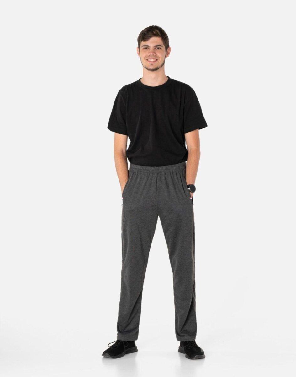 Spodnie dresowe męskie 46390 to komfortowo skrojony model w sportowym stylu z klasycznymi prostymi nogawkami. Z założenia wyróżniają się dużą wygodą, a dopasowanie w pasie zapewnia szeroki, elastyczny pas ściągający oraz dodatkowo wpuszczona w pasek taśma regulacyjna z możliwością jej zawiązywania. Na bokach spodni dwie wpuszczane kieszenie na dłonie zasuwane na zamki błyskawiczne. Tył gładki bez kieszeni. Zawsze modna i wygodna klasyczna prosta nogawka. Ergonomiczny krój spodni nie ogranicza swobody ruchów a właściwe dla odzieży sportowej proporcje surowcowe wpływają pozytywnie na komfort użytkowania.