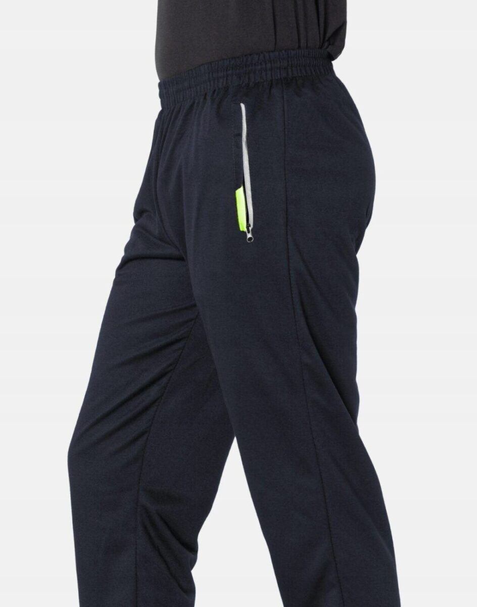 Spodnie dresowe męskie 4712 to komfortowo skrojony model w sportowym stylu z lekko zwężanymi nogawkami zakończonymi ściągaczem. Z założenia wyróżniają się dużą wygodą, a dopasowanie w pasie zapewnia szeroki, elastyczny pas ściągający oraz dodatkowo wpuszczona w pasek taśma regulacyjna z możliwością jej zawiązywania. Na bokach spodni dwie wpuszczane kieszenie na dłonie zasuwane na zamki błyskawiczne, wykończone kontrastowymi wstawkami, co nadaje im wyjątkowego charakteru i ożywia sportowy look. Tył gładki bez kieszeni. Ergonomiczny krój spodni nie ogranicza swobody ruchów, a właściwe dla odzieży sportowej proporcje surowcowe wpływają pozytywnie na komfort użytkowania. Sylwetka użytkownika staje się w nich optycznie smuklejsza i nabiera dynamicznego sportowego wyglądu.