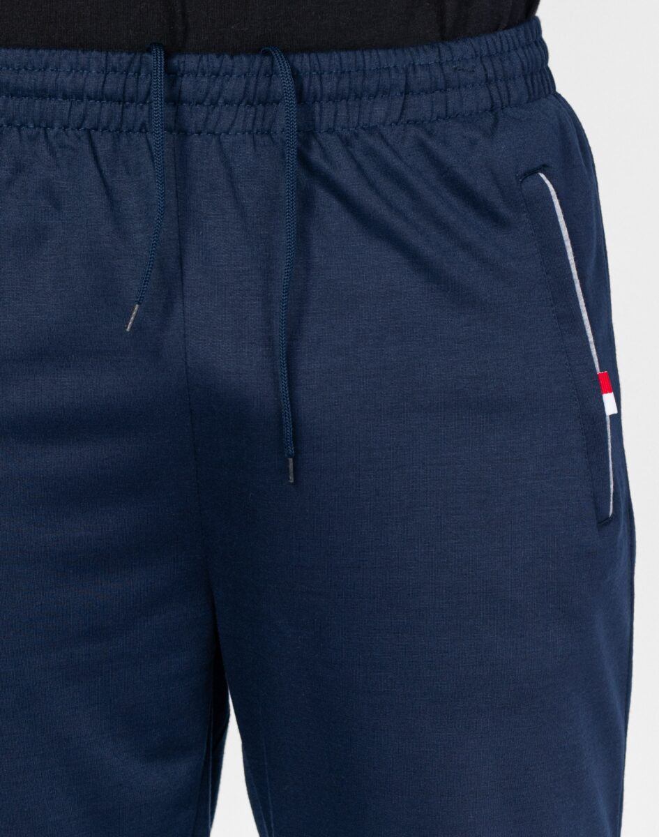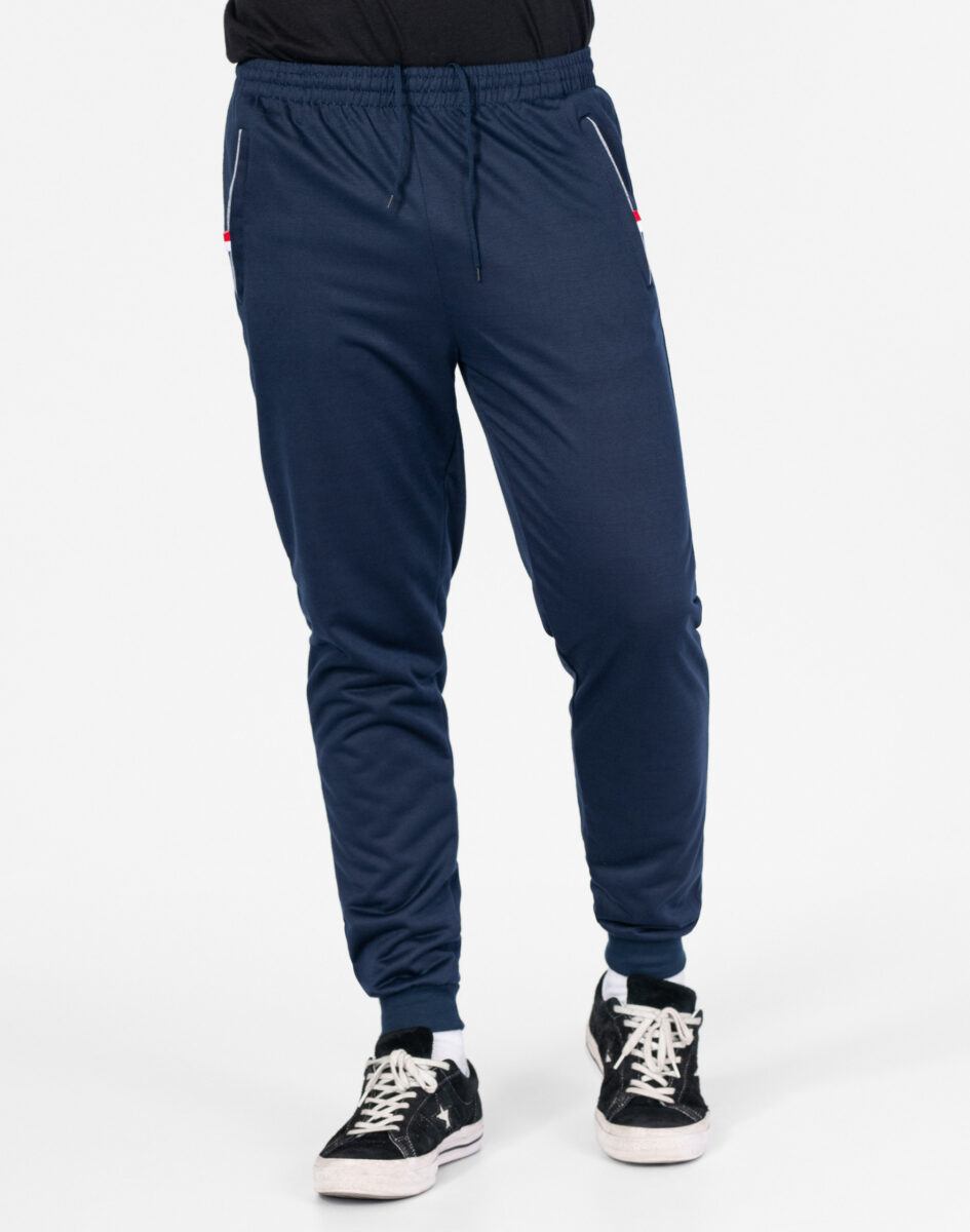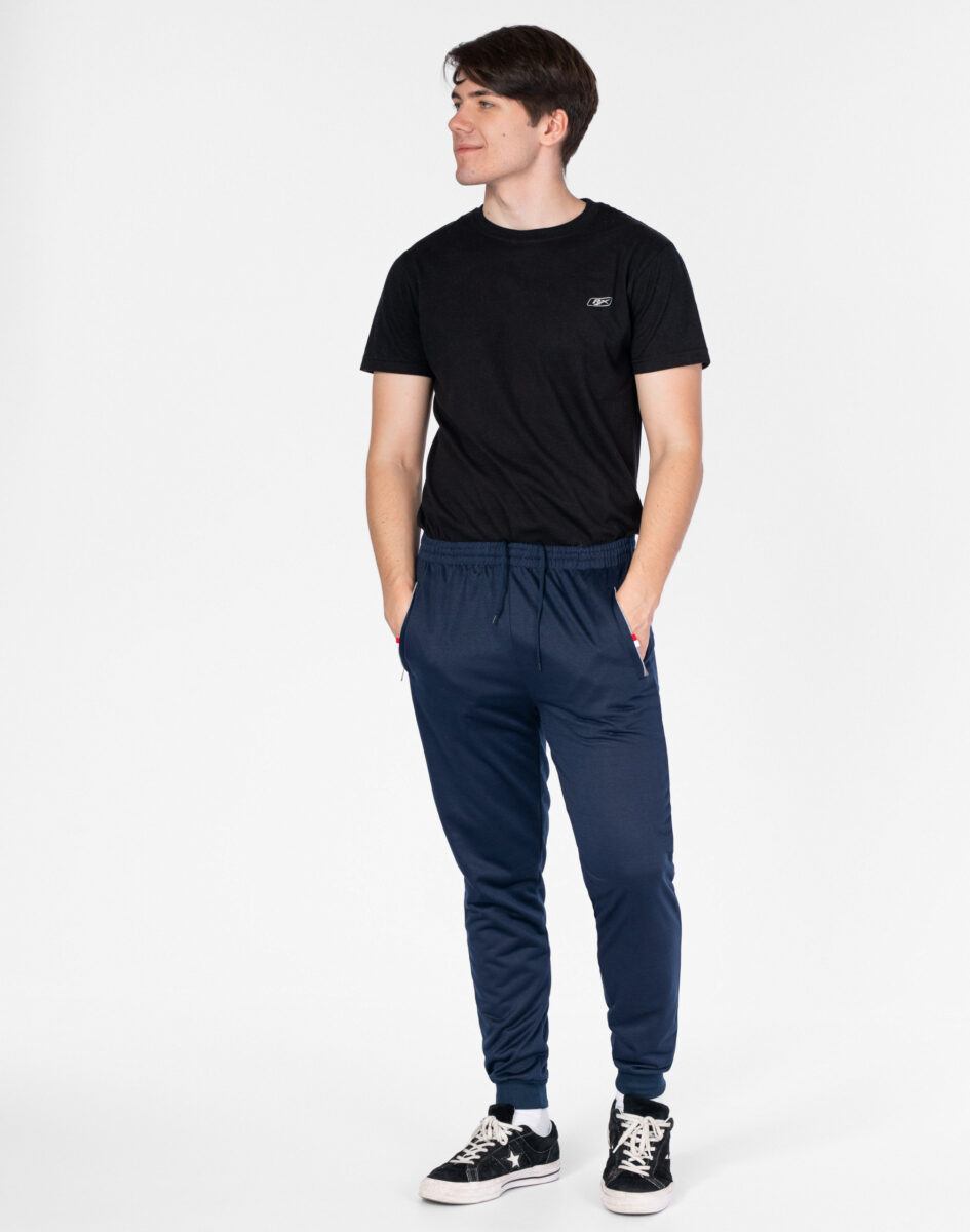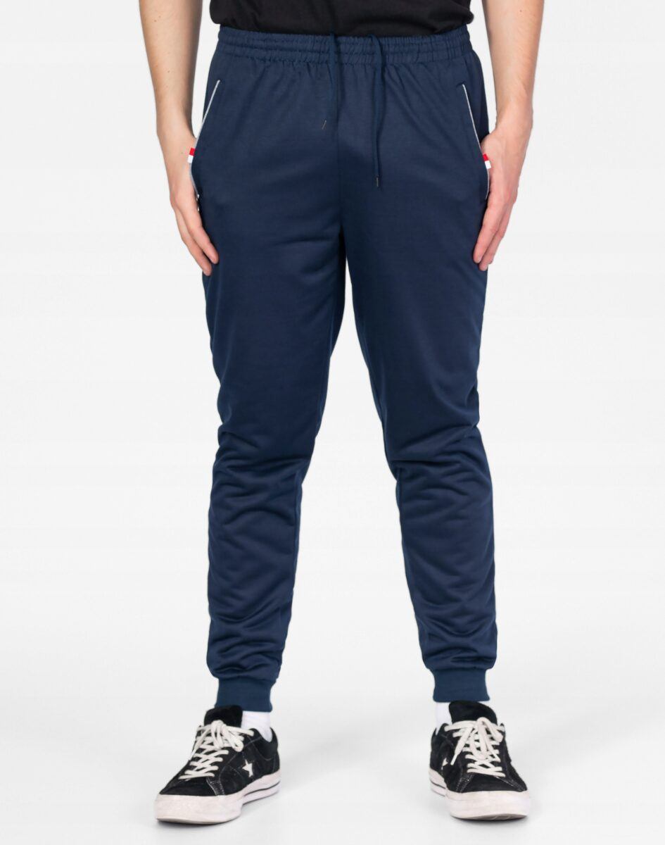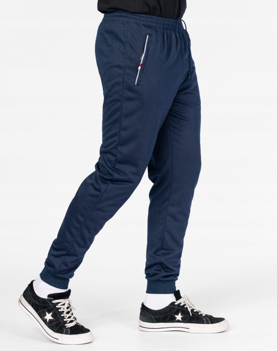 Spodnie dresowe męskie 4765 to komfortowo skrojony model w sportowym stylu z lekko zwężanymi nogawkami zakończonymi ściągaczem. Z założenia wyróżniają się dużą wygodą a dopasowanie w pasie zapewnia szeroki, elastyczny pas ściągający oraz dodatkowo wpuszczona w pasek taśma regulacyjna z możliwością jej zawiązywania. Na bokach spodni dwie wpuszczane kieszenie na dłonie zasuwane na zamki błyskawiczne. Tył gładki bez kieszeni. Ergonomiczny krój spodni nie ogranicza swobody ruchów a właściwe dla odzieży sportowej proporcje surowcowe wpływają pozytywnie na komfort użytkowania. Sylwetka użytkownika staje się w nich optycznie smuklejsza i nabiera dynamicznego sportowego wyglądu.