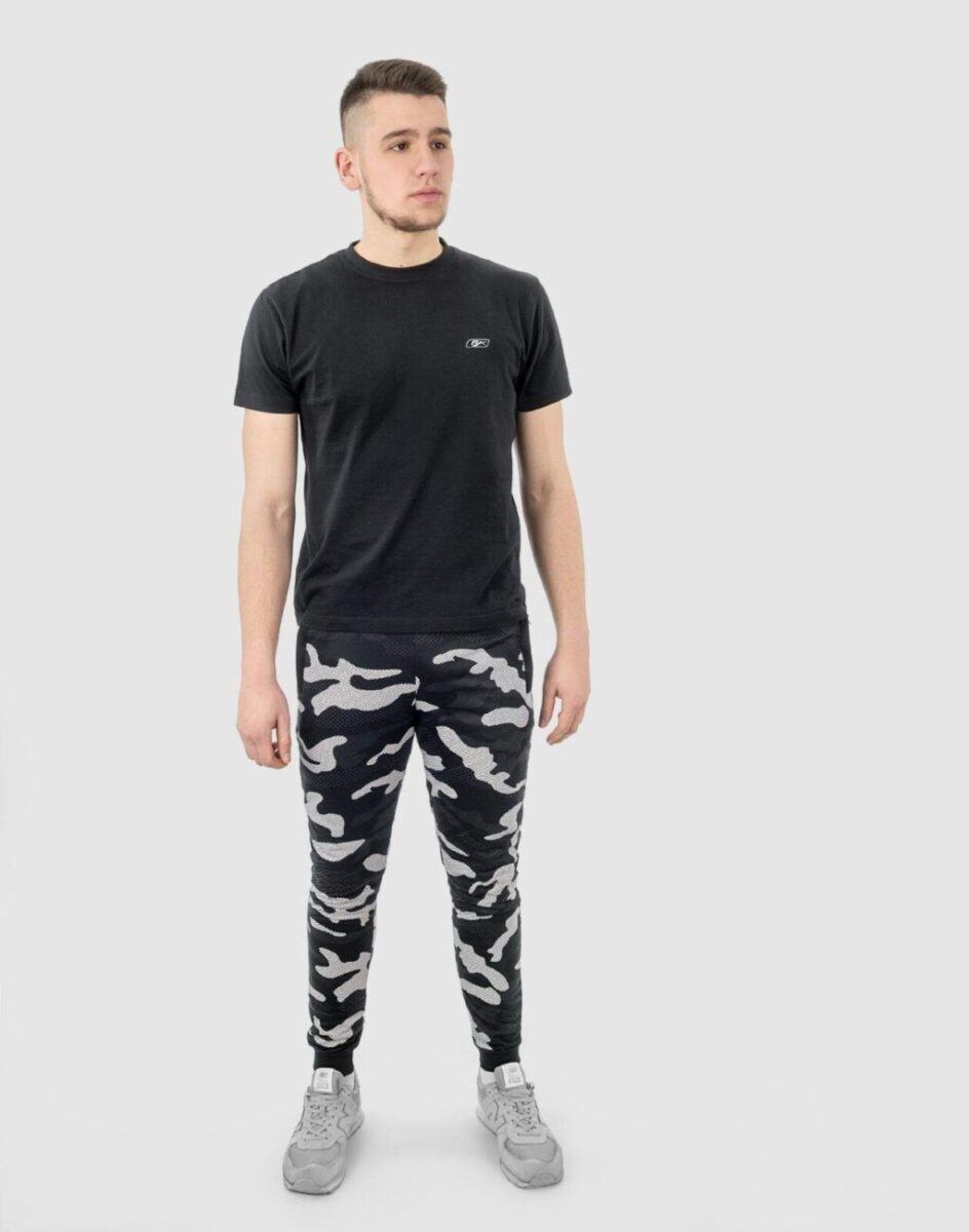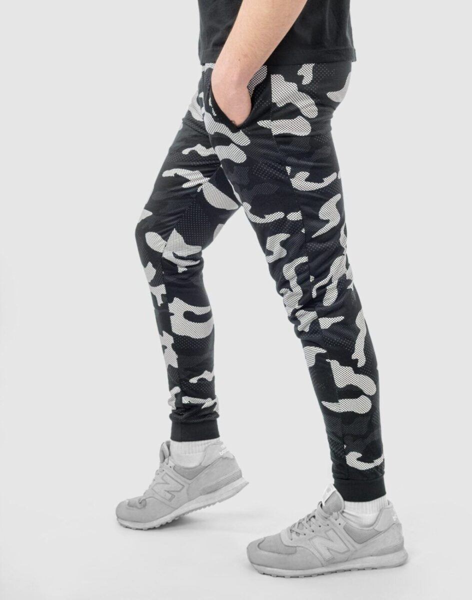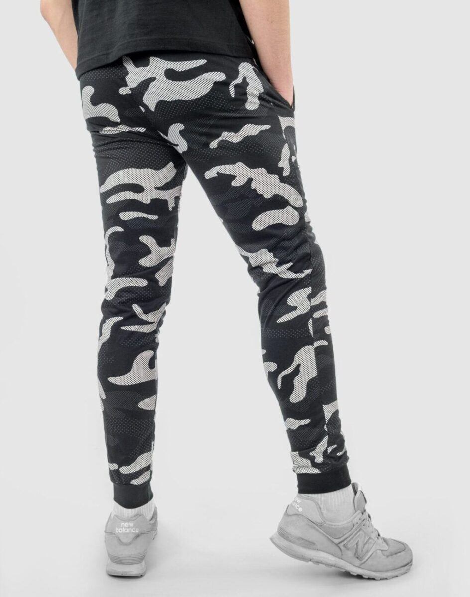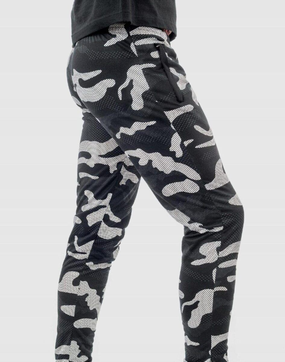 Spodnie dresowe moro Camo 40022 to komfortowo skrojony model w sportowym stylu ze zwężanymi nogawkami zakończonymi ściągaczem. Uszyte są z naturalnej dzianiny bawełnianej z dodatkiem poliestru zapewniającej maksymalną wygodę i komfort ich użytkowania. Dodatek poliestru to gwarancja pełnej swobody ruchów oraz stabilności rozmiarów po wielokrotnym praniu. Z założenia wyróżniają się dużą wygodą a dopasowanie w pasie zapewnia szeroki, elastyczny pas ściągający oraz dodatkowo wpuszczona w pasek taśma regulacyjna z możliwością jej zawiązywania. Na bokach spodni znajdują się dwie wpuszczane kieszenie na dłonie zasuwane na zamki błyskawiczne. Ergonomiczny krój spodni nie ogranicza swobody ruchów a właściwe dla odzieży sportowej proporcje surowcowe i niewielka gramatura wpływają pozytywnie na komfort użytkowania.