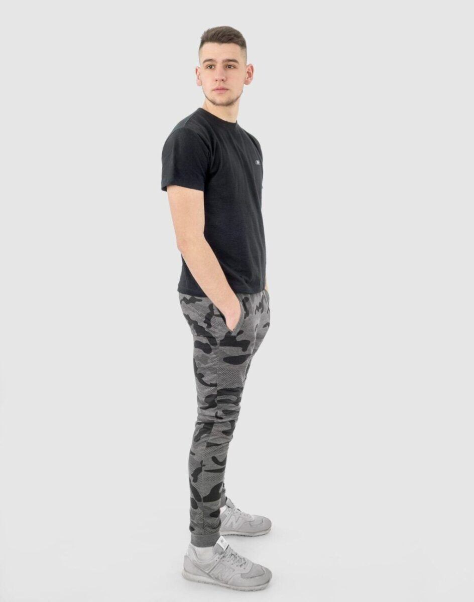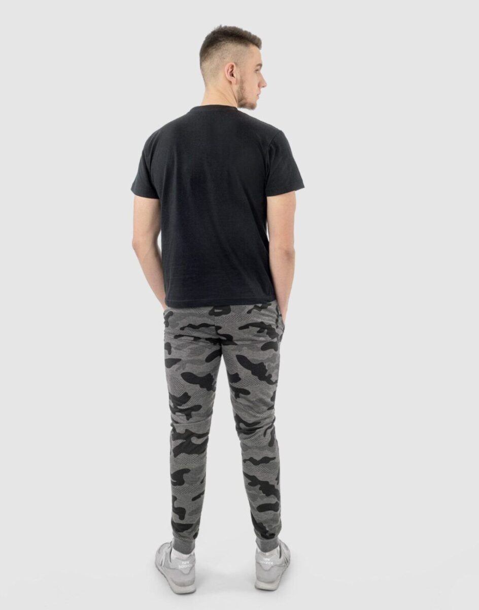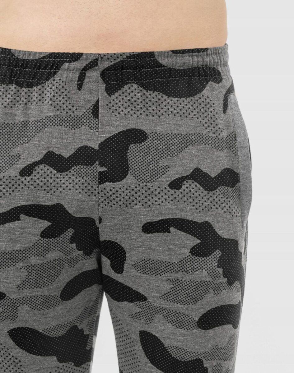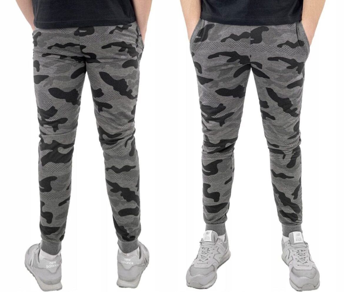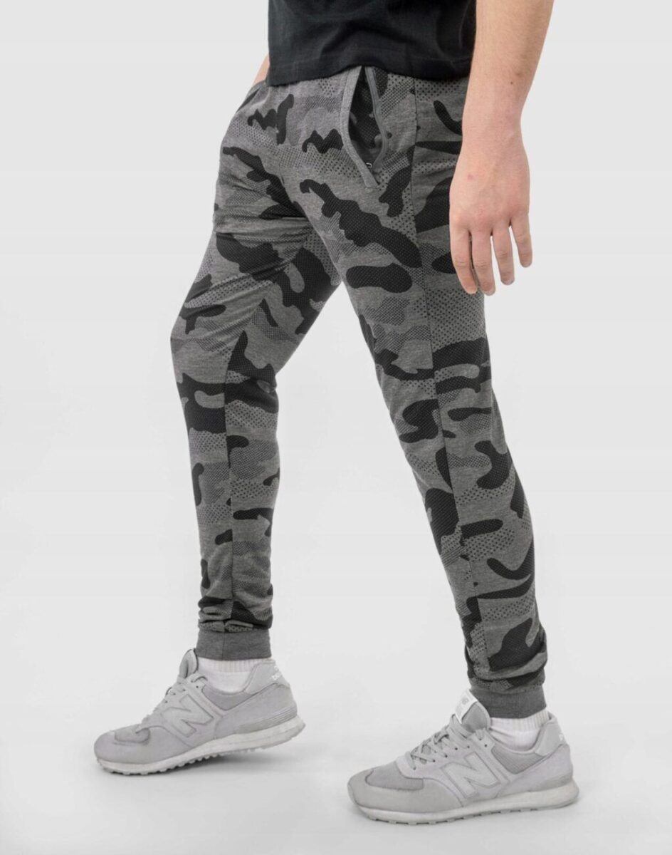 Spodnie dresowe moro Camo 40022 to komfortowo skrojony model w sportowym stylu ze zwężanymi nogawkami zakończonymi ściągaczem. Uszyte są z naturalnej dzianiny bawełnianej z dodatkiem poliestru zapewniającej maksymalną wygodę i komfort ich użytkowania. Dodatek poliestru to gwarancja pełnej swobody ruchów oraz stabilności rozmiarów po wielokrotnym praniu. Z założenia wyróżniają się dużą wygodą a dopasowanie w pasie zapewnia szeroki, elastyczny pas ściągający oraz dodatkowo wpuszczona w pasek taśma regulacyjna z możliwością jej zawiązywania. Na bokach spodni znajdują się dwie wpuszczane kieszenie na dłonie zasuwane na zamki błyskawiczne. Ergonomiczny krój spodni nie ogranicza swobody ruchów a właściwe dla odzieży sportowej proporcje surowcowe i niewielka gramatura wpływają pozytywnie na komfort użytkowania.