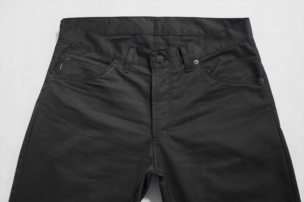 - Kieszenie: dwie wpuszczane kieszenie z przodu oraz bilonówka, dwie naszywane kieszenie z tyłu