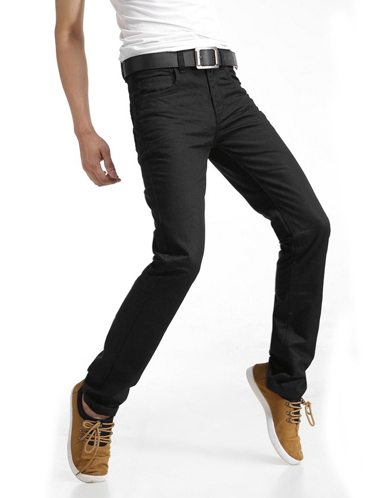 Spodnie męskie wizytowe o linii Slim w kolorze czarnym w delikatny prążek. Przeznaczone dla mężczyzn ceniących sobie sportowy, wygodny styl i nienaganną elegancję. Z powodzeniem łączą w sobie zalety użytkowe spodni sportowych (wygodny krój jak jeansy) i klasyczny wygląd spodni wizytowych (elegancki wizytowy materiał). Zapinane na kryty zamek błyskawiczny i guzik. Na bokach dwie kieszenie zaokrąglone wpuszczane oraz mniejsza kieszonka tzw. bilonówka. Na tyle dwie kieszenie nakładane jak w typowych spodniach jeansowych. W pasie szlufki umożliwiające stylizacje z paskiem. Modna zwężana nogawka typu SLIM nie zaprasowana na kant. Najbardziej podatne na uszkodzenia miejsca wzmocnione są dodatkowymi przeszyciami oraz nitami.