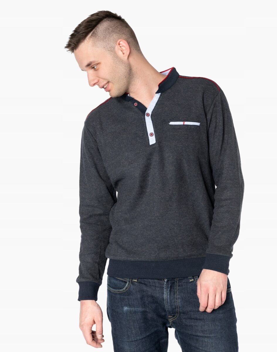 Klasyczny męski sweter z rozpinaną stójką z najnowszej kolekcji firmy Darx Sport Wear zwracający uwagę efektownym fasonem w ponadczasowej kolorystyce. Dół swetra i mankiety wykonane ze sprężystej dzianiny ściągaczowej. Wyprodukowany z wysokogatunkowej cienkiej dzianiny swetrowej o drobnym, gęstym splocie zapewniającej wysoki komfort noszenia. Odpowiedni krój swetra nie ogranicza swobody ruchów a niewielka gramatura pozytywnie wpływa na komfort użytkowania. Model wygodny i uniwersalny, doskonale sprawdzi się zarówno w formalnych jak i nieformalnych stylizacjach. Dzięki swojej prostocie bardzo elegancki. Doskonale wygląda zarówno z jeansami, sztruksami, jak i bawełnianymi spodniami typu chino. Uwagę zwraca efektowną fakturą w ponadczasowej kolorystyce i ozdobnymi kontrastowymi lamówkami gwarantując tym wiele udanych casualowych stylizacji.