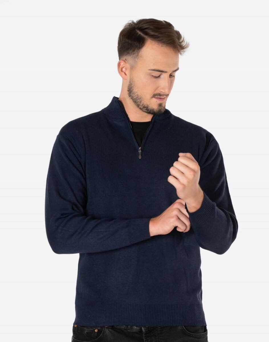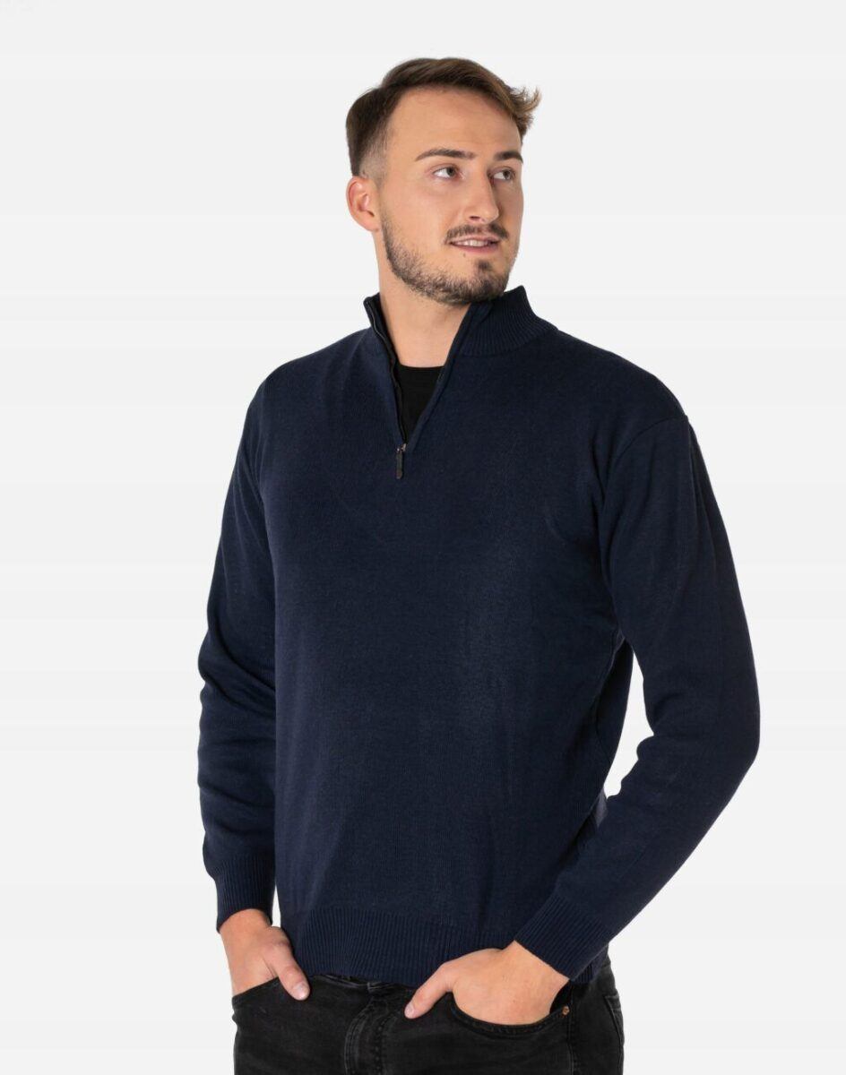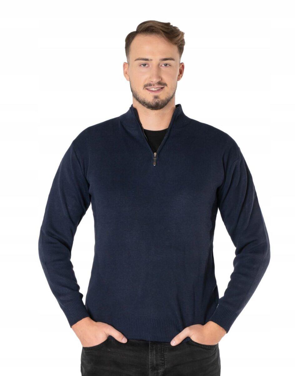 Elegancki Sweter Męski Półgolf z Rozsuwaną Stójką