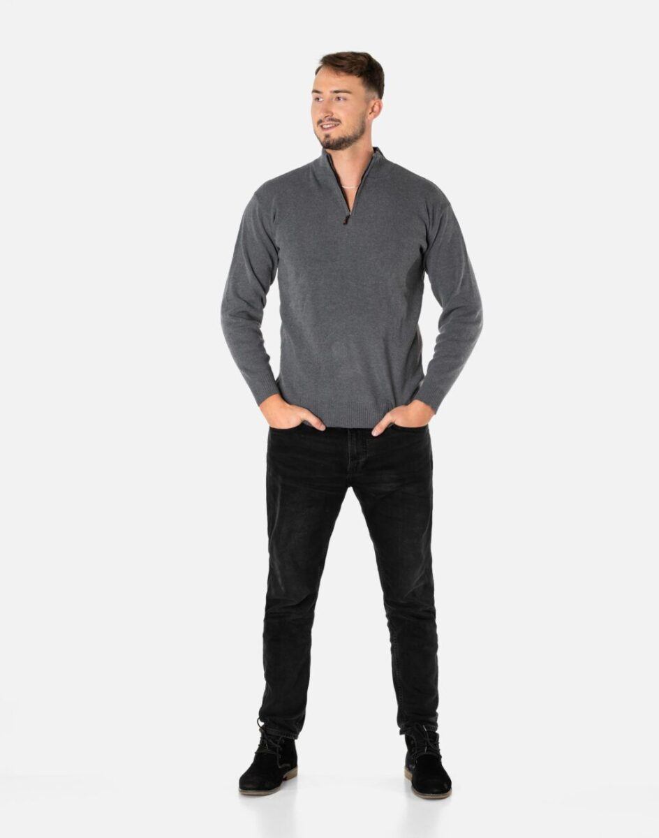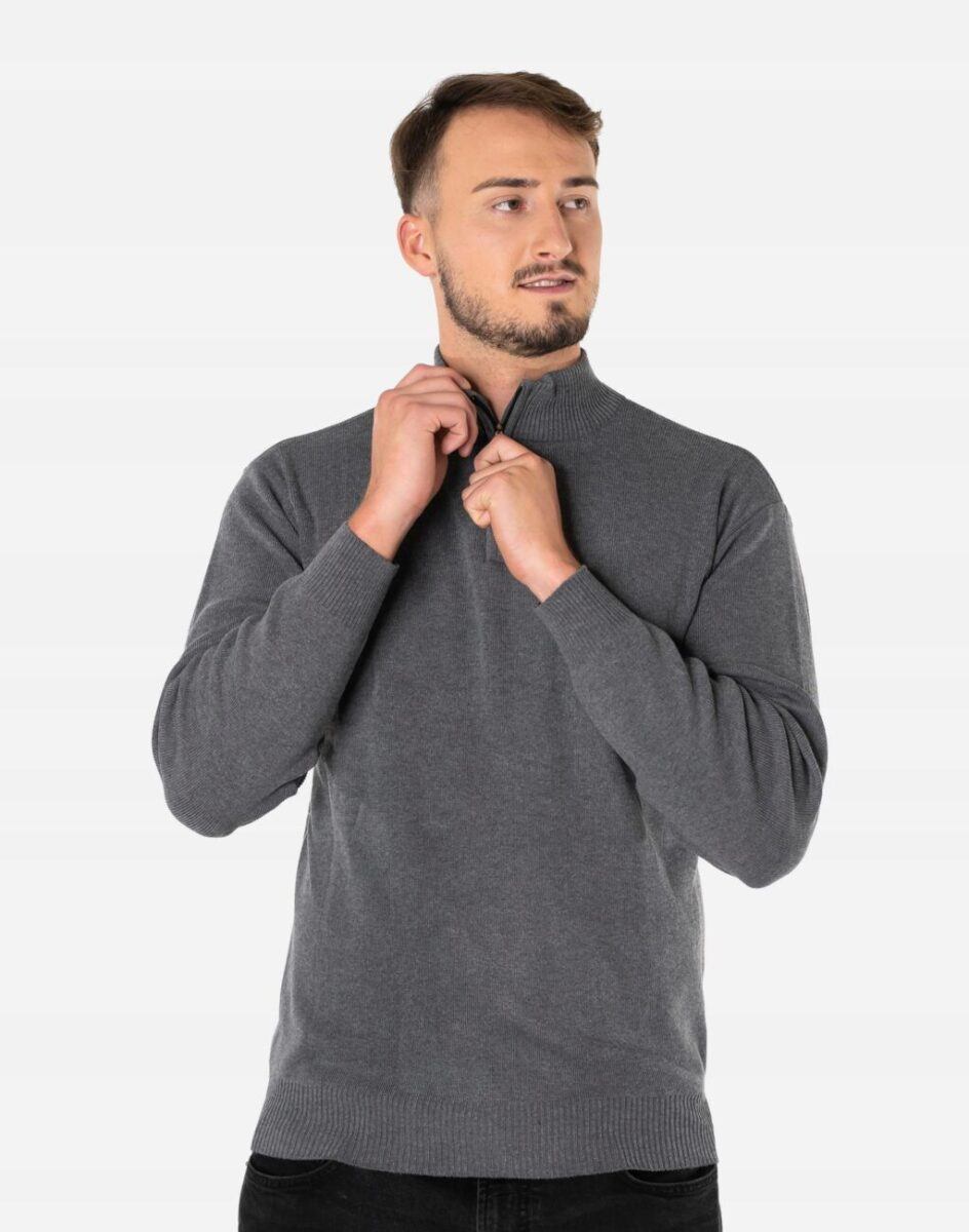 Klasyczny sweter męski typu półgolf zwracający uwagę praktyczną rozpinaną stójką z najnowszej kolekcji jesień/zima. Wkładany przez głowę, dół swetra i mankiety wykonane ze sprężystej dzianiny ściągaczowej. Wysoki kołnierz/stójka skutecznie chroni podbródek i szyję a często zastępuje nawet szalik co jest bardzo wygodne. Wyprodukowany z wysokogatunkowej dzianiny swetrowej zapewniającej wysoki komfort noszenia i swobodę ruchów. Naturalna wełna to gwarancja wspaniałej izolacji cieplnej oraz oddychania skóry. Akryl i elastan zapewniają pełną swobodę ruchów, wygodę noszenia oraz stabilność rozmiarów i koloru po wielokrotnym praniu. Dodatkową zaletą akrylu jest to, że, w przeciwieństwie do wielu włókien naturalnych, nie powoduje on alergii ani podrażnień skórnych. Jest to więc doskonała alternatywa dla osób, które z powodu uczuleń nie mogą nosić innych tkanin. Akryl jest sprężysty, przez co nie gniecie się ani nie odkształca – pomaga więc uniknąć długiego i uciążliwego prasowania, a ubranie wygląda dobrze przez cały dzień. Ponadto nie wymaga on specjalnej pielęgnacji, można go normalnie prać, a ponieważ jest materiałem sztucznym, nie dotyczy go też problem moli ubraniowych. Model wygodny i uniwersalny, doskonale sprawdzi się zarówno w formalnych jak i mniej formalnych stylizacjach. Dzięki swojej prostocie bardzo elegancki. Doskonale wygląda zarówno z jeansami, sztruksami, jak i chinosami w stylu preppy.