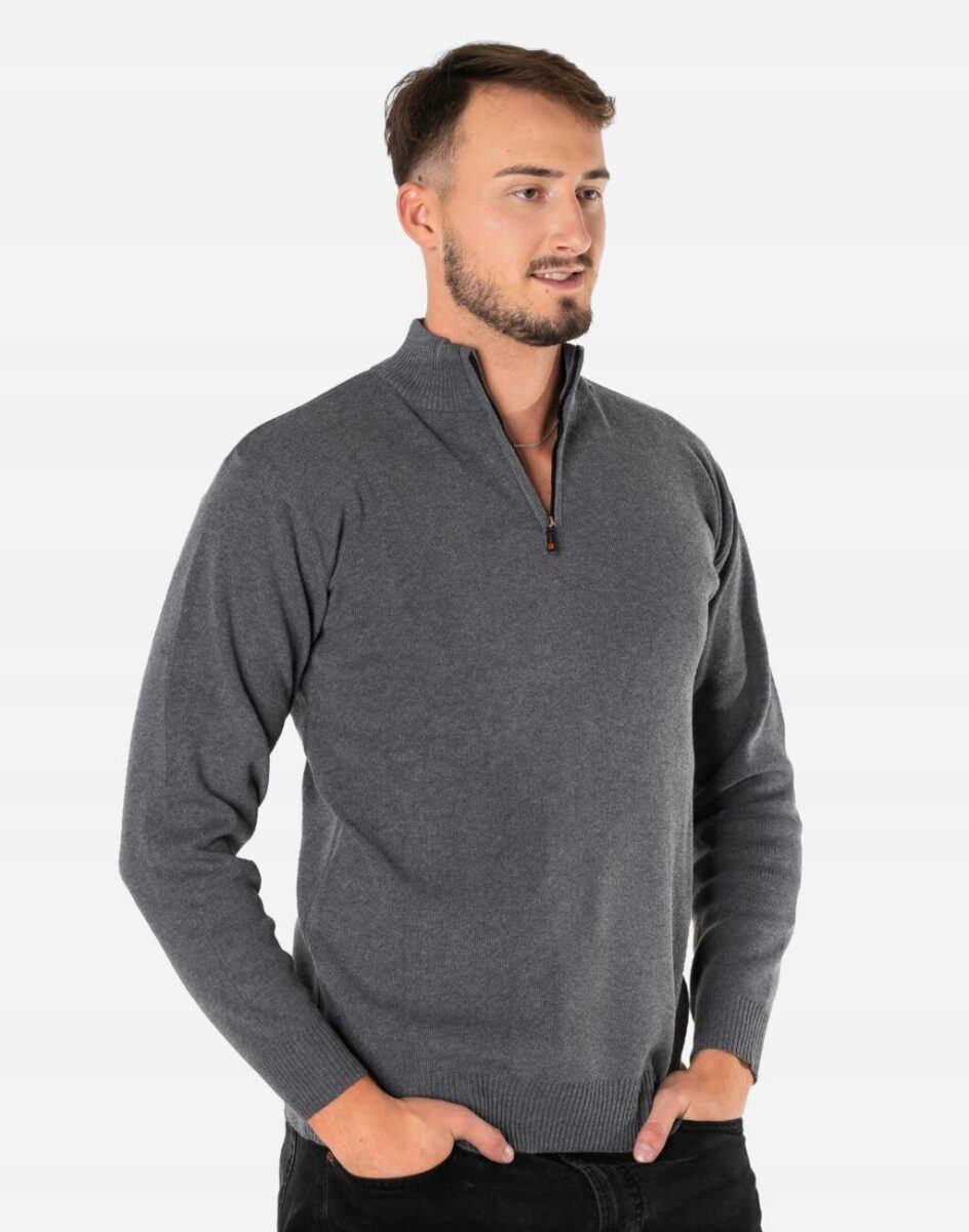 Elegancki Sweter Męski Półgolf z Rozsuwaną Stójką