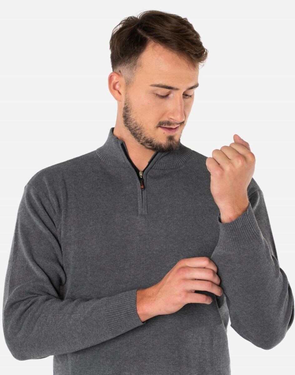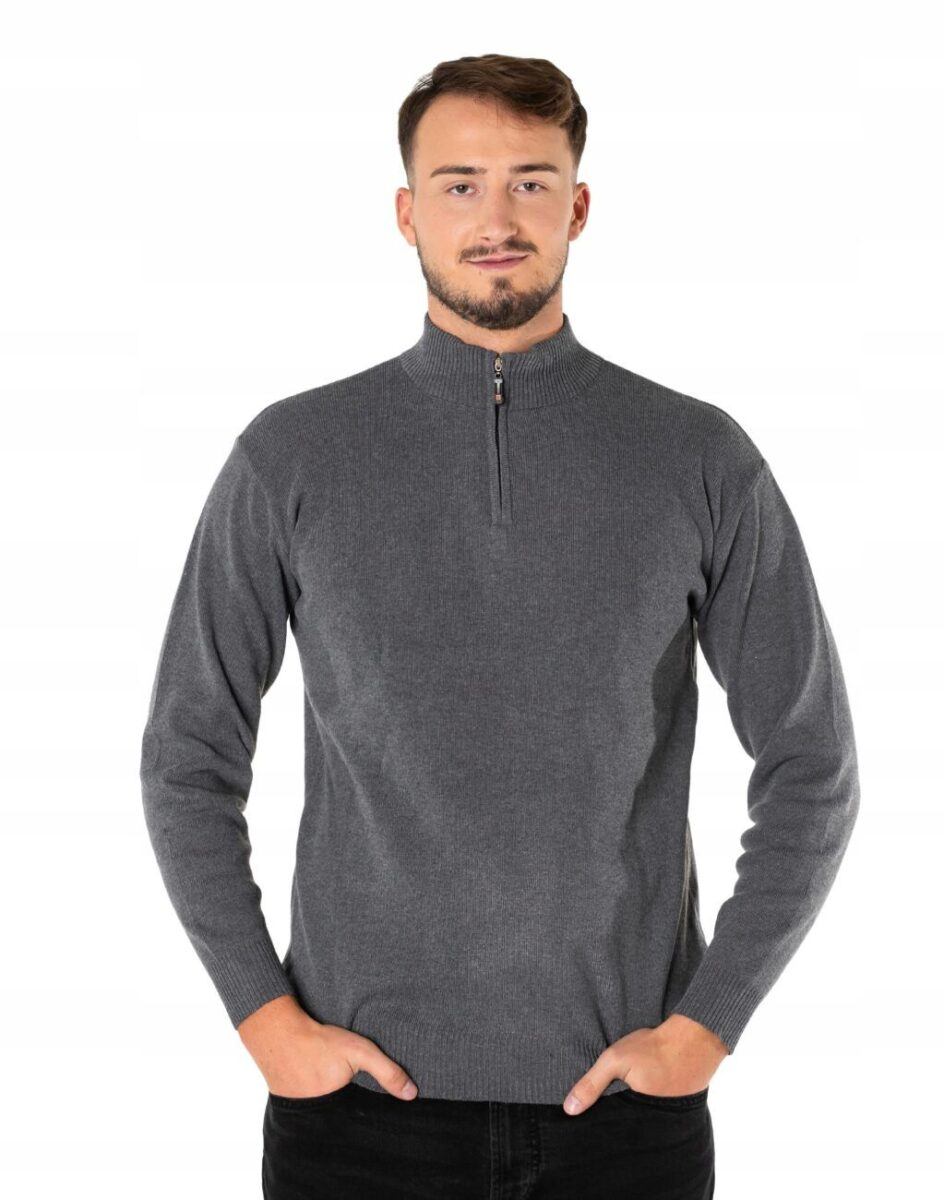 Elegancki Sweter Męski Półgolf z Rozsuwaną Stójką
