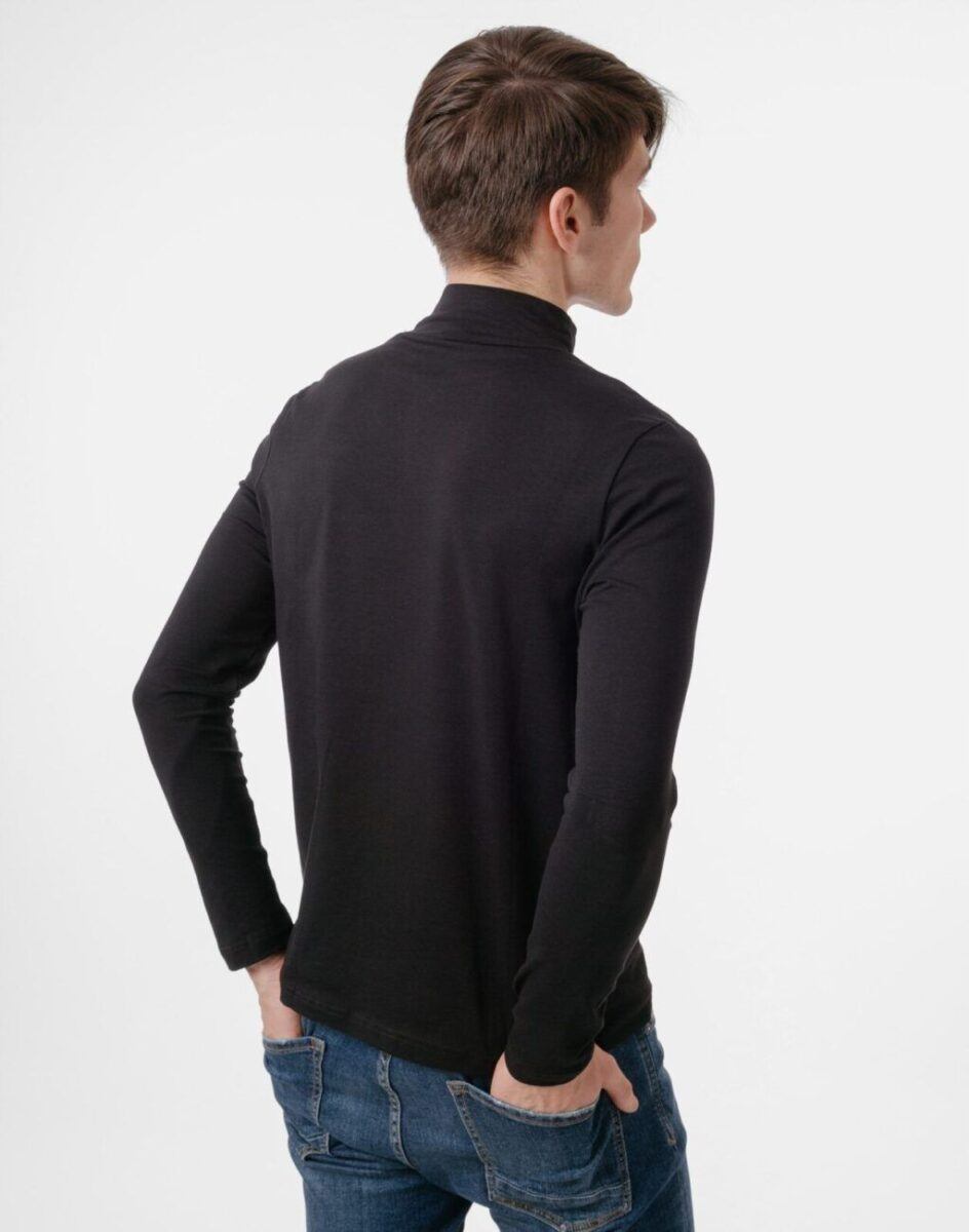 Klasyczny gładki półgolf męski z najnowszej kolekcji wiosna/jesień/zima, wyprodukowany z cienkiej przyjemnej w dotyku dzianiny bawełnianej z dodatkiem elastanu, zapewniającej wysoki komfort noszenia. Dodatek elastanu gwarantuje to, że nigdy nie będą rozciągnięte i zachowają swój pierwotny fason.