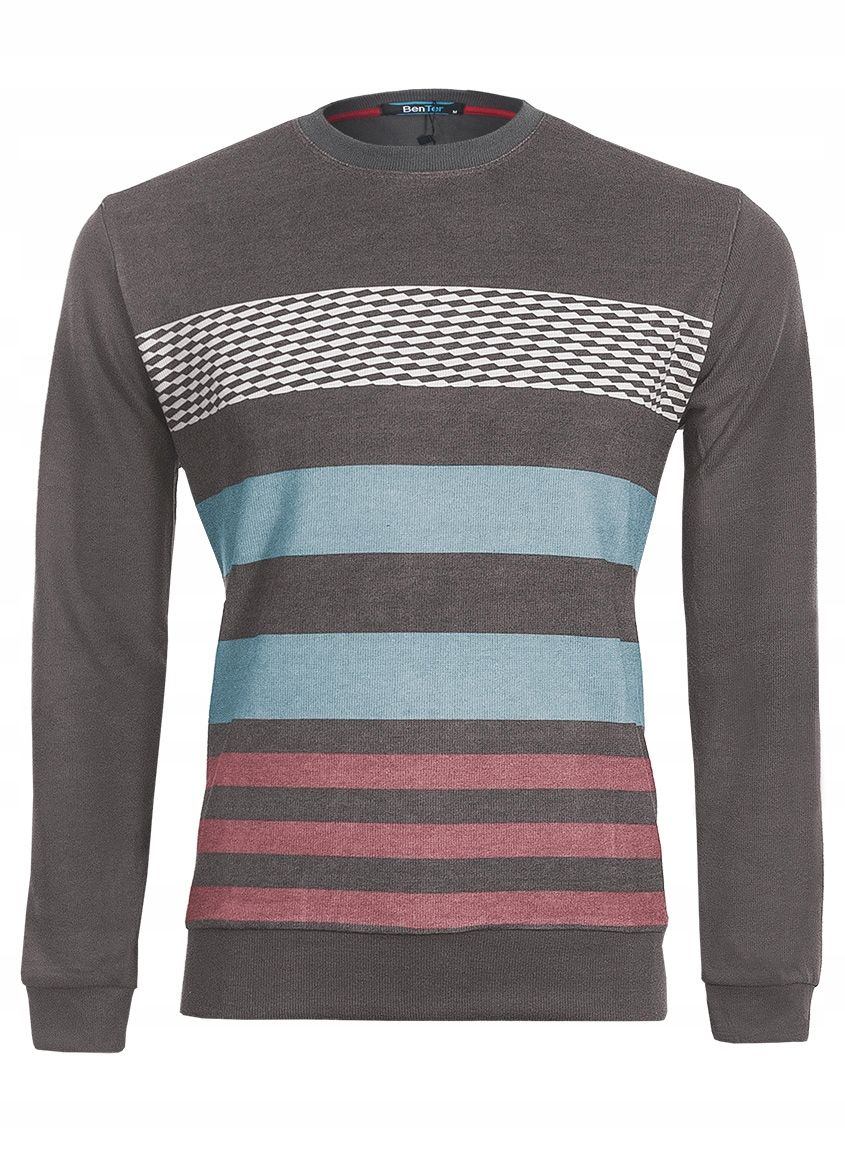 Klasyczny męski sweter typu round-neck z najnowszej kolekcji firmy BENTER. Wyprodukowany z wysokogatunkowej miękkiej dzianiny 100% bawełnianej o drobnym splocie zapewniającej wysoki komfort noszenia. Zwracający uwagę efektowną fakturą w poziome pasy w ponadczasowej kolorystyce.