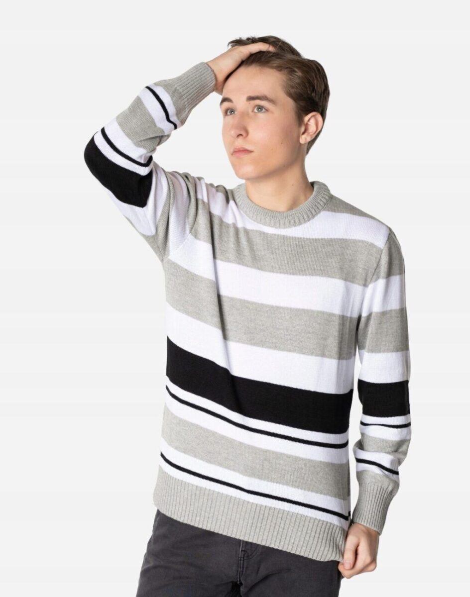 Paski to jeden z wiodących wzorów obecnych w modzie w każdym sezonie. Na męskich swetrach wyglądają elegancko i schludnie.