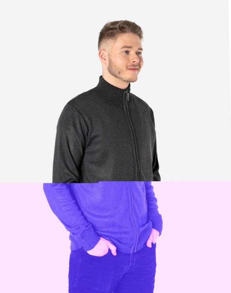 Rozsuwany sweter wełniany dla mężczyzn ceniących sobie praktyczne rozwiązania.