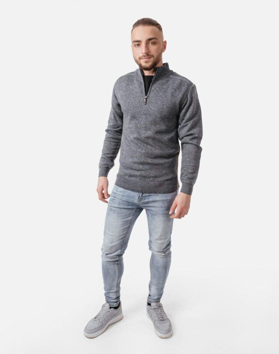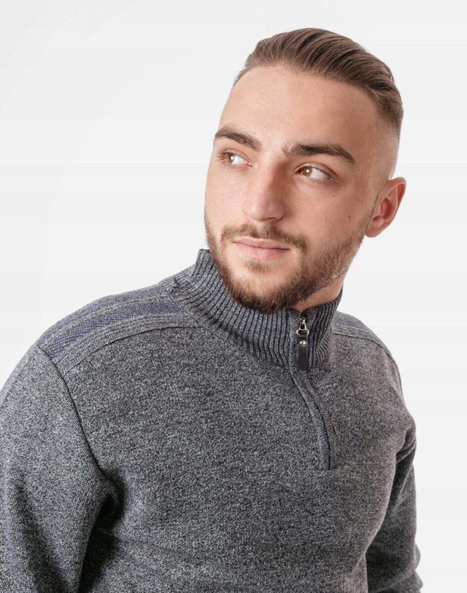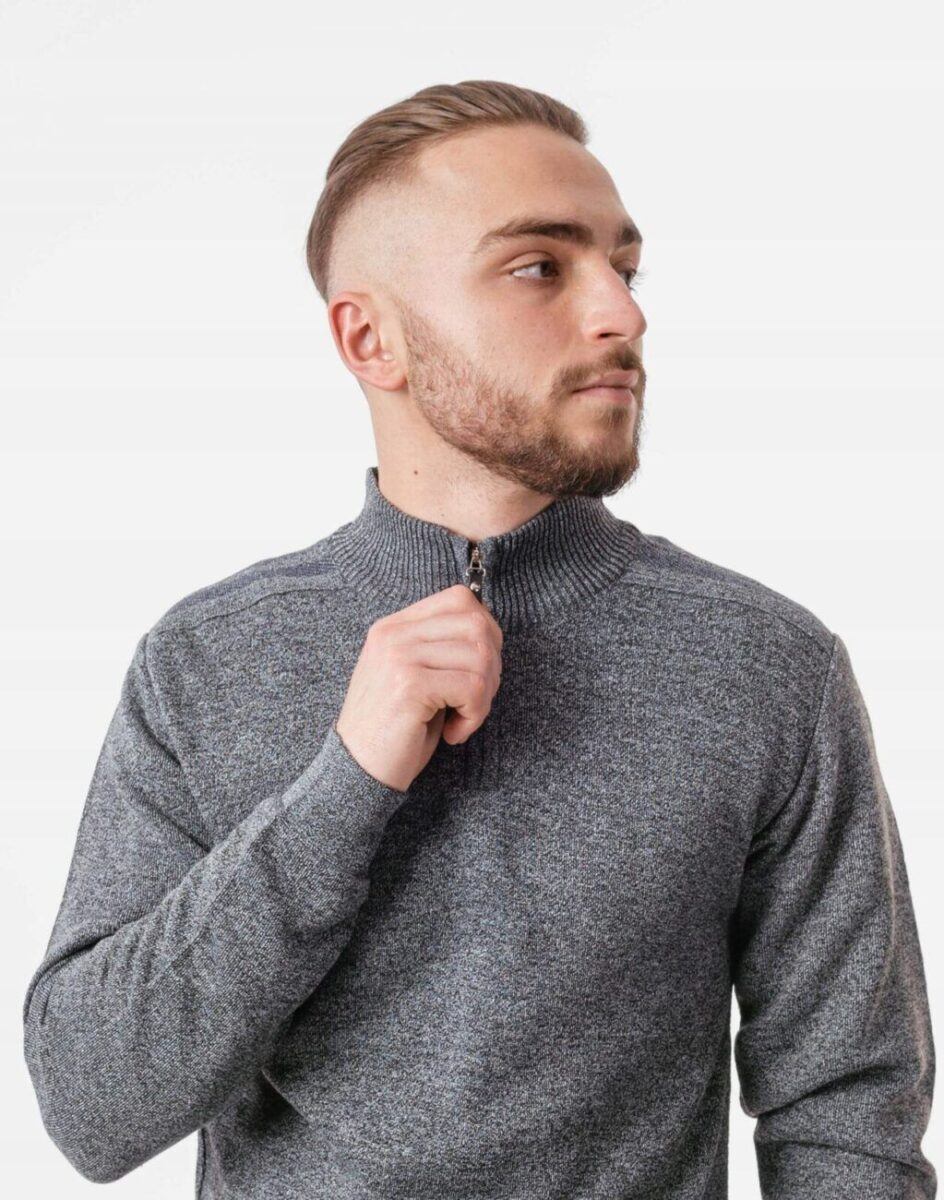 Elegancki Sweter Męski z Rozsuwaną Stójką
